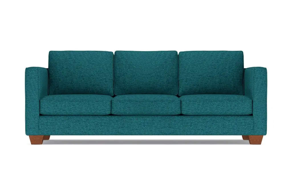 What could be classier than Catalina Island? Only this super-sleek and totally customizable Catalina convertible sofa with pullout bed from Apt2B. The chic design features high track arms and wooden blocked feet for a modern, hip look. Meanwhile, there's a special surprise inside: a deluxe innerspring or memory foam queen size sleeper bed that folds out to create a cozy guest room in seconds. Let your guests drift off to dreamland in peace on this queen sleeper sofa, then get back to enjoying a fab furniture accent once they head back home. This sofa comes in a wide range of gorgeous fabric colors. You can also personalize it with your choice of leg finish and mattress type to get the innerspring or memory foam sleeper sofa of your dreams. This unique customizable sleeper sofa is made right here in the USA.