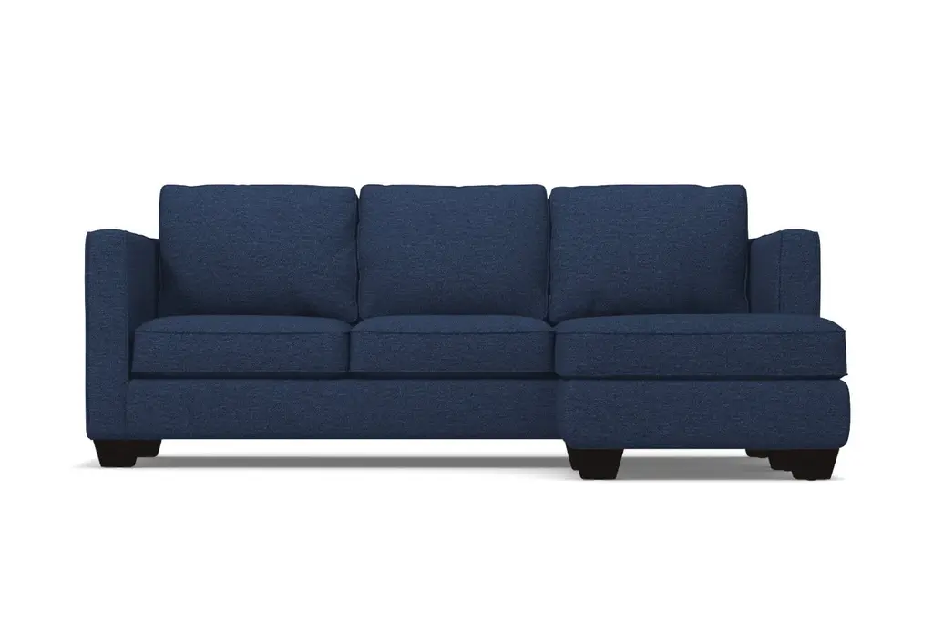 Classic looks, comforting, supportive, full of surprises... good qualities in a mate and in a couch, right? The Catalina reversible chaise sleeper sofa bed has it all. The customizable design features high track arms and wooden blocked feet. The cozy cushions are great for movie marathons, but they also pop off quickly and easily when you want to fold out the queen size interior mattress. That's right, this sofa doubles as your instant guest room when overnight guests arrive. And there's even one more surprise in store - the chaise lounge can be positioned on either side of the couch, giving you versatility for your current and future living spaces. This Apt2B sleeper sofa comes with plenty of customization options. Choose your fabric color, leg finish and mattress type (standard innerspring or upgraded memory foam) to make it your own. You'll also get free a limited lifetime warranty on this high-quality, American-made sleeper sofa.