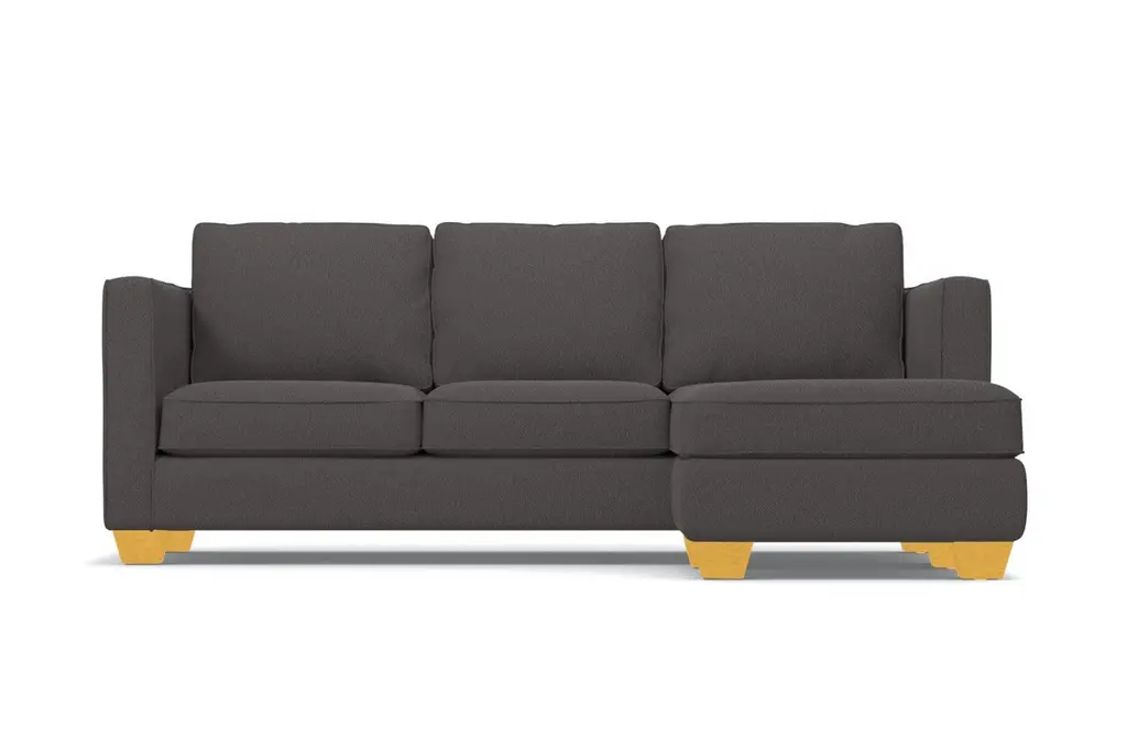 Classic looks, comforting, supportive, full of surprises... good qualities in a mate and in a couch, right? The Catalina reversible chaise sleeper sofa bed has it all. The customizable design features high track arms and wooden blocked feet. The cozy cushions are great for movie marathons, but they also pop off quickly and easily when you want to fold out the queen size interior mattress. That's right, this sofa doubles as your instant guest room when overnight guests arrive. And there's even one more surprise in store - the chaise lounge can be positioned on either side of the couch, giving you versatility for your current and future living spaces. This Apt2B sleeper sofa comes with plenty of customization options. Choose your fabric color, leg finish and mattress type (standard innerspring or upgraded memory foam) to make it your own. You'll also get free a limited lifetime warranty on this high-quality, American-made sleeper sofa.