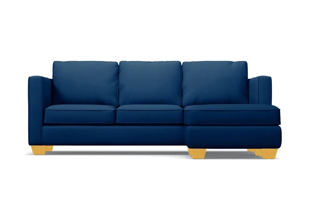 Classic looks, comforting, supportive, full of surprises... good qualities in a mate and in a couch, right? The Catalina reversible chaise sleeper sofa bed has it all. The customizable design features high track arms and wooden blocked feet. The cozy cushions are great for movie marathons, but they also pop off quickly and easily when you want to fold out the queen size interior mattress. That's right, this sofa doubles as your instant guest room when overnight guests arrive. And there's even one more surprise in store - the chaise lounge can be positioned on either side of the couch, giving you versatility for your current and future living spaces. This Apt2B sleeper sofa comes with plenty of customization options. Choose your fabric color, leg finish and mattress type (standard innerspring or upgraded memory foam) to make it your own. You'll also get free a limited lifetime warranty on this high-quality, American-made sleeper sofa.