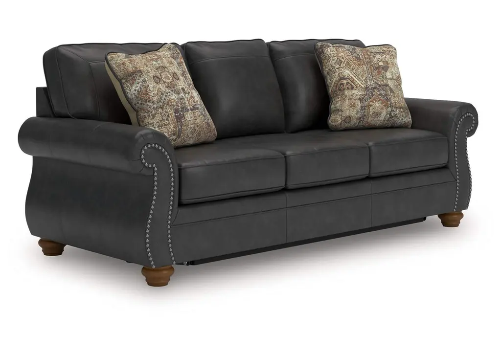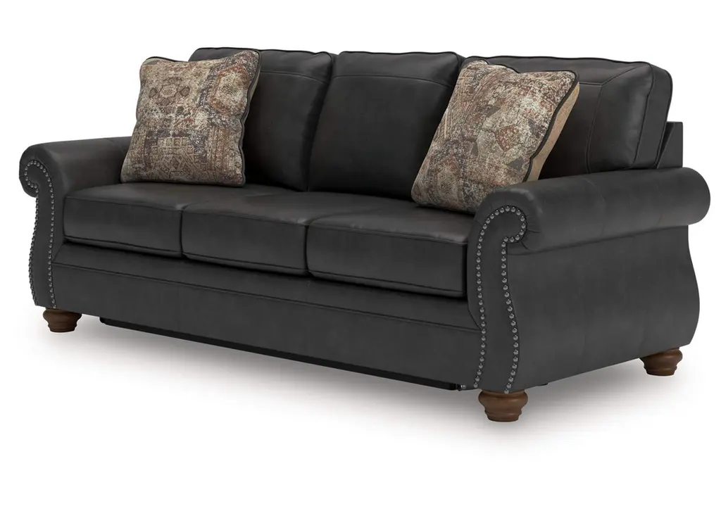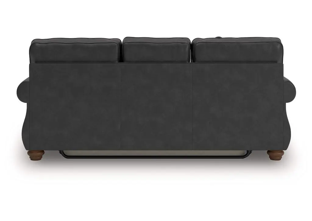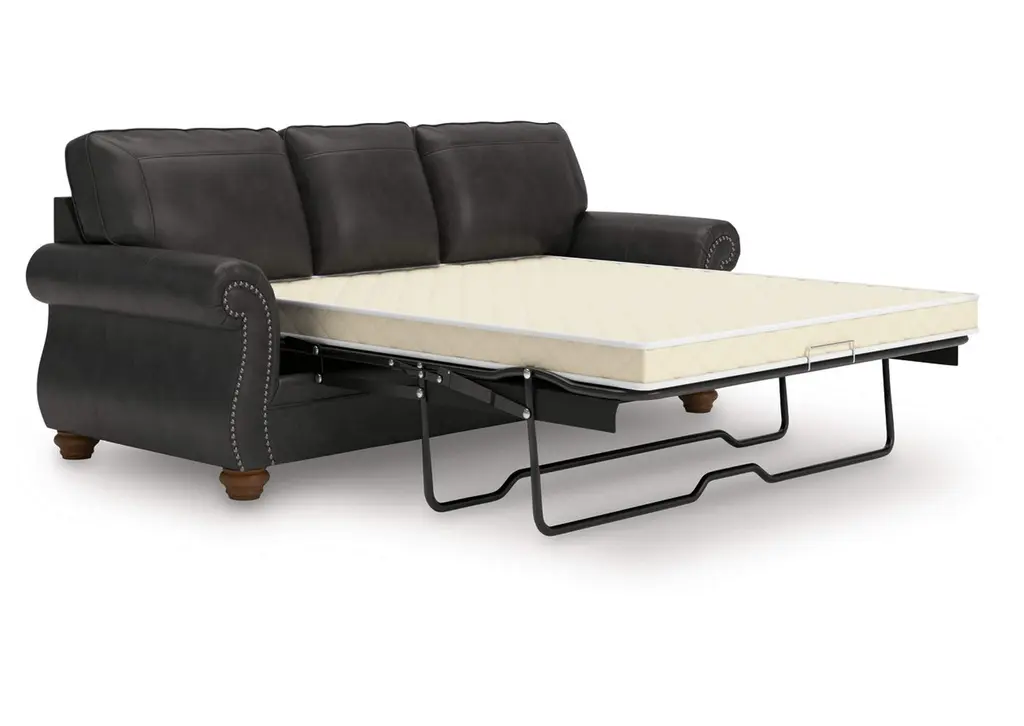 Everyone can have the best rest in the house with this queen sofa sleeper. Its nailhead trim puts the finishing touches on the traditional roll arms you love. The sofa's comfy, durable cushions—wrapped in a rustic yet sophisticated faux leather—keep you feeling relaxed, while its turned legs show that style and quality flow from top to bottom. A pull-out queen mattress made with quality memory foam comfortably accommodates overnight guests. Weight 212.000 lbs. (95.4kgs.)