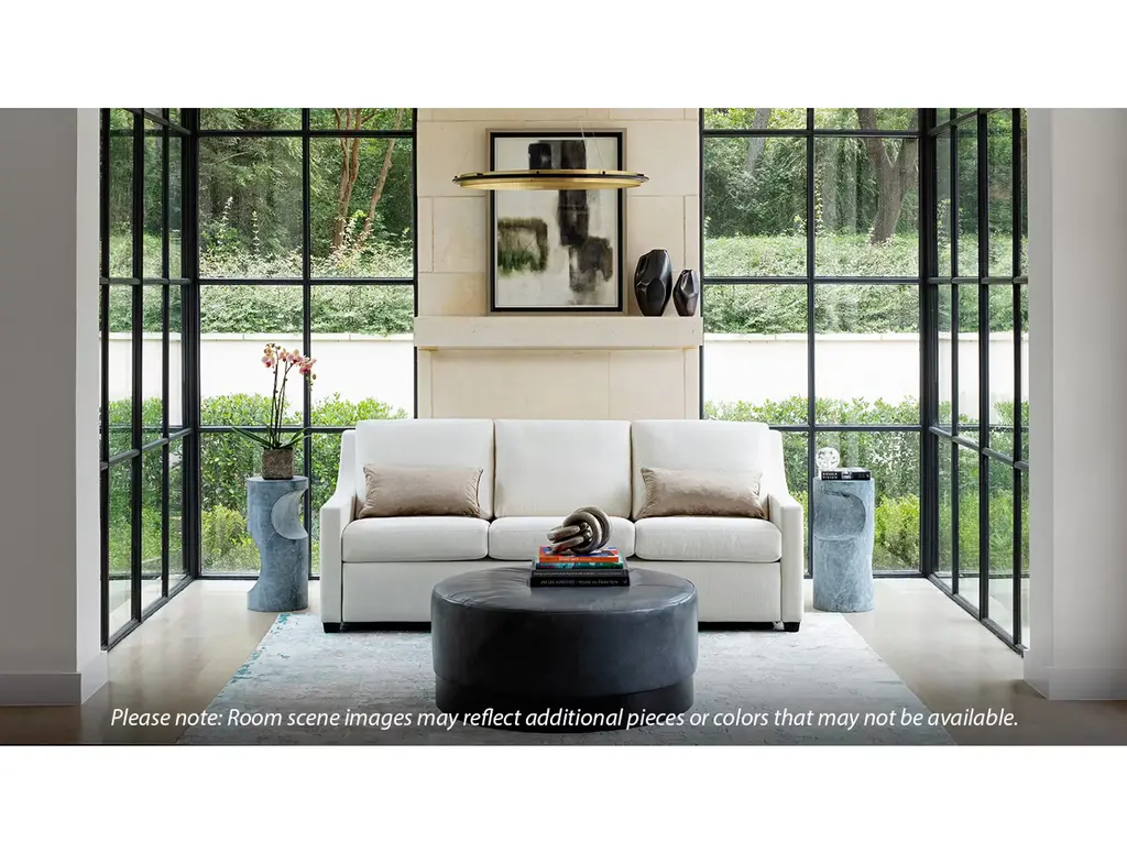 Accommodate extra guests with ease with the Perry Queen Plus Sleeper Sofa from American Leather. This traditional-style sleep sofa features narrow track arms for a clean-lined sleek look from every angle, along with loose back and seat cushions. Guests can sleep in ultimate comfort on the Tempur-Pedic® mattress. Block feet in an ebony finish complete the look. Custom-order fabrics are available.