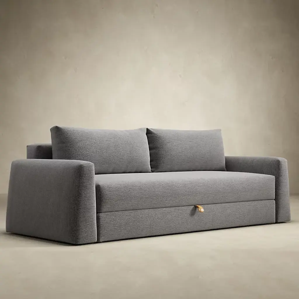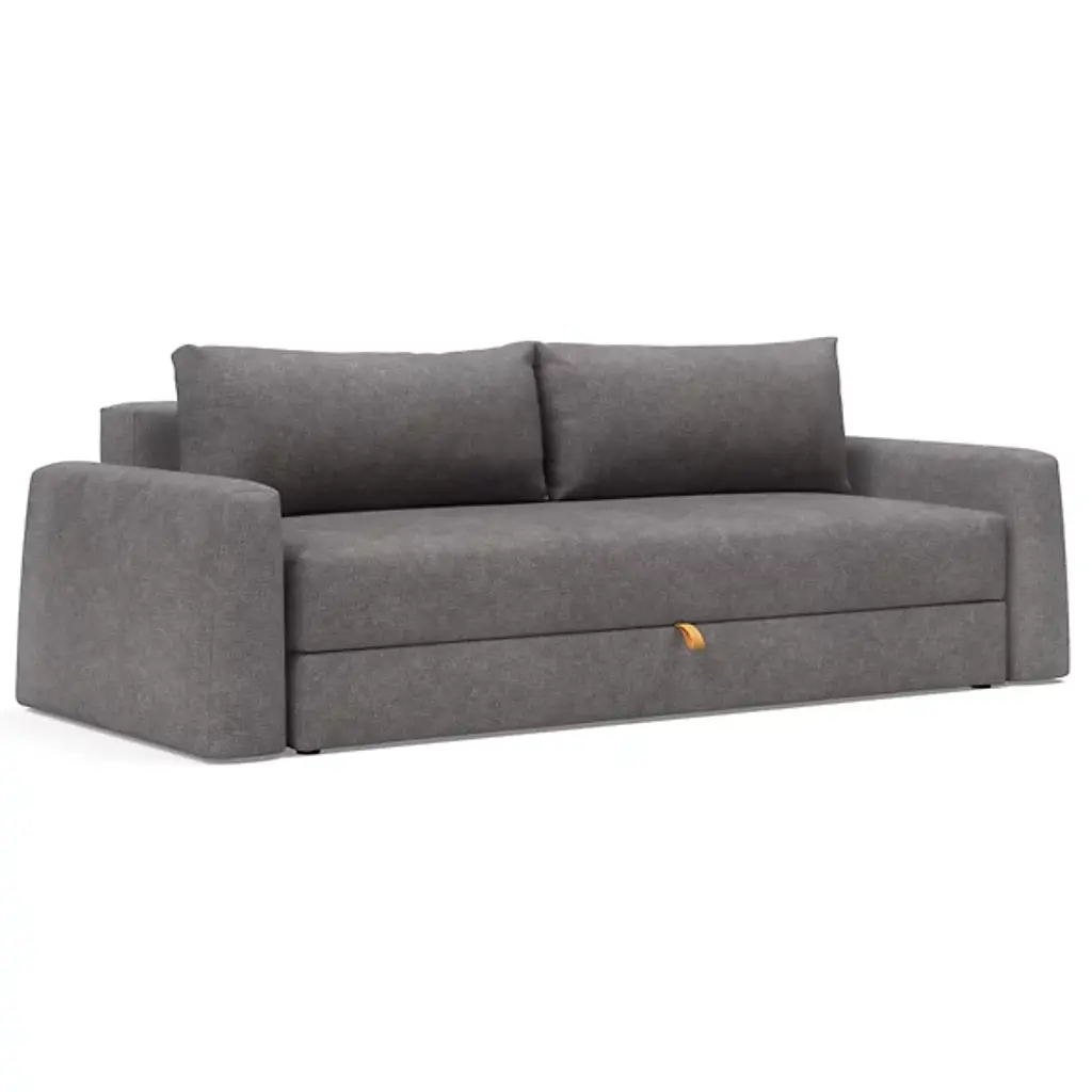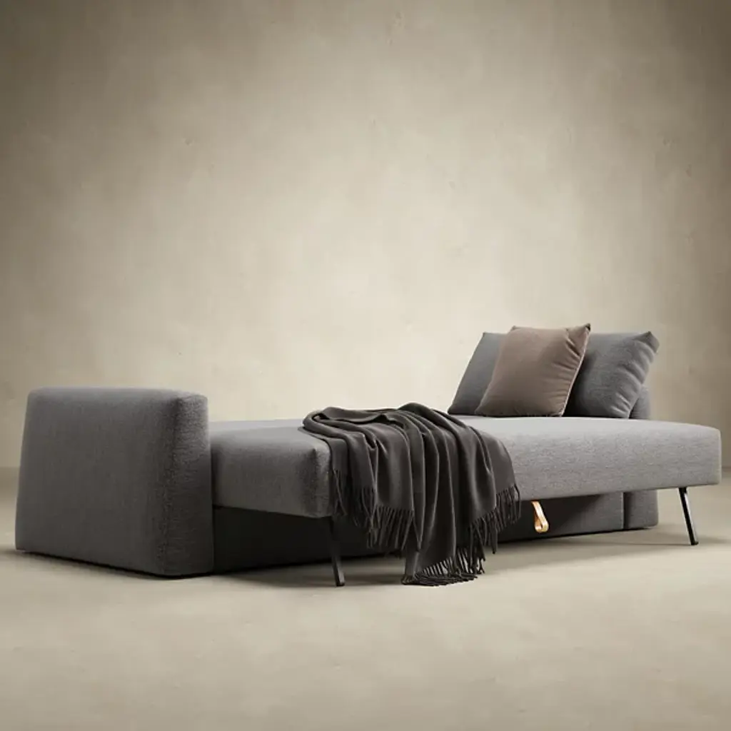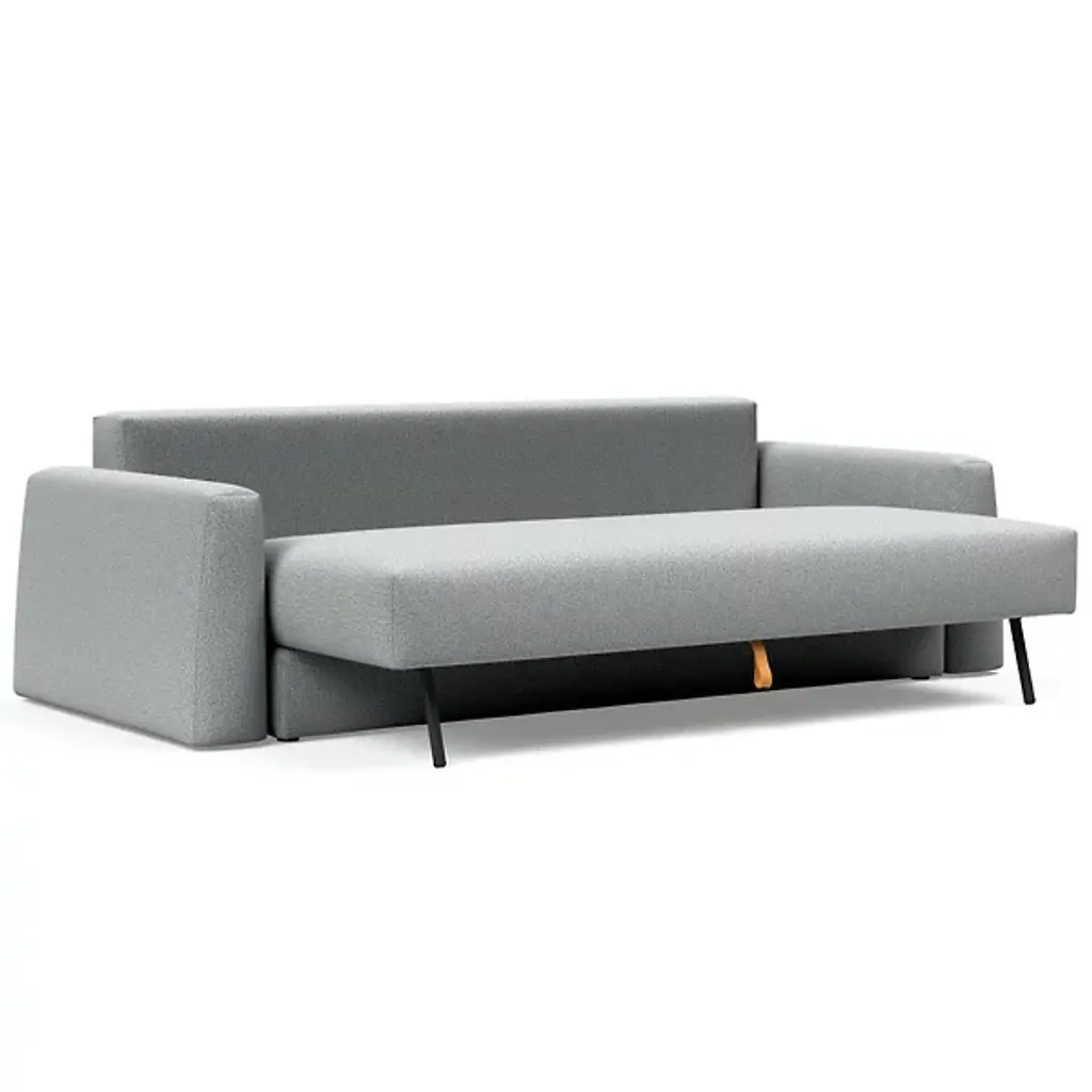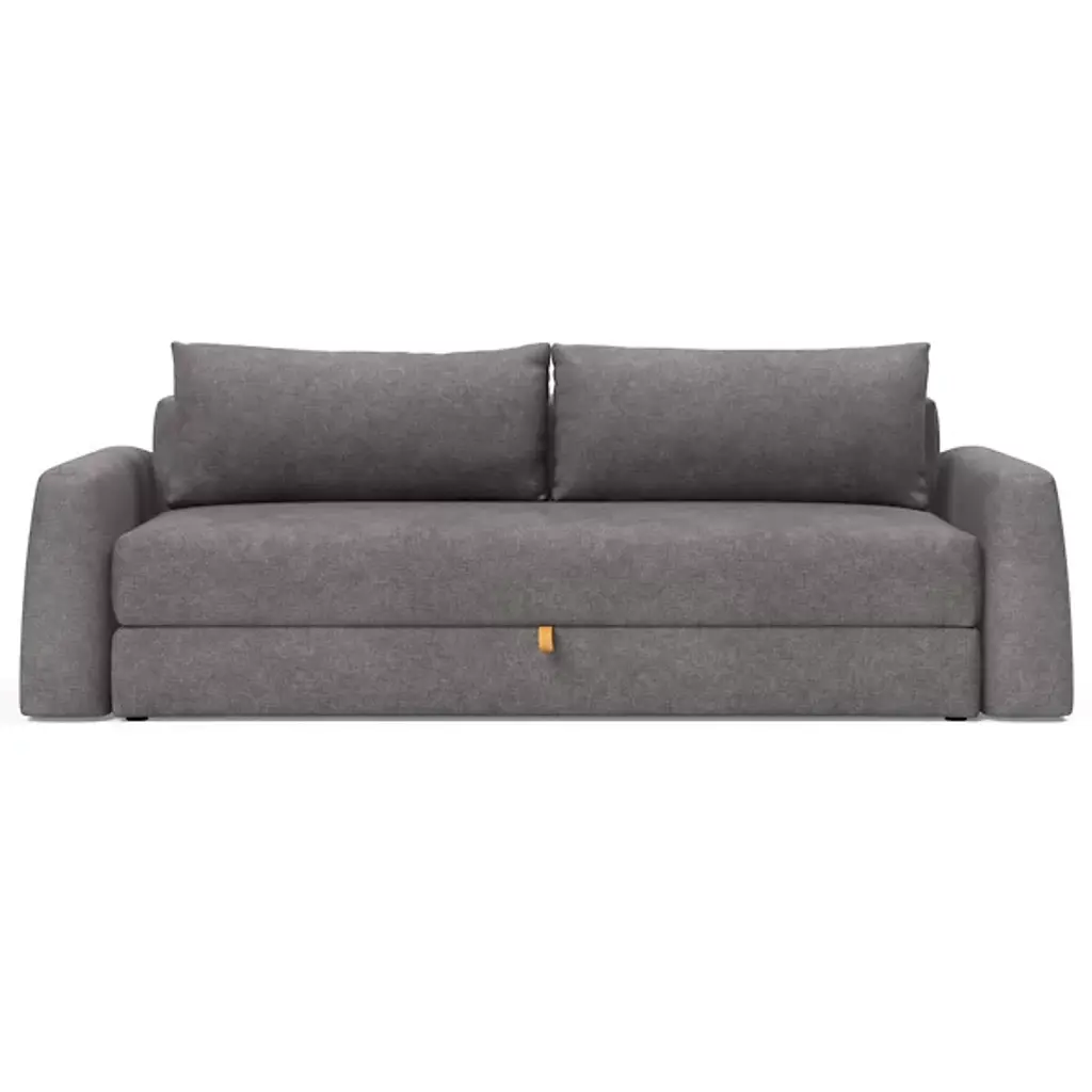 The Cone Sofa Bed from Innovation Living combines comfort and space-saving storage in a single clever design. Designed by Per Weiss and made in Denmark, this soft, broad sleeper sofa conceals a roomy storage compartment beneath the seat and reveals it as it folds out. It easily shifts from a three-seat sofa to a full-size bed, showing off a slim, strong matte steel frame. A cushioned seat and back incorporate pocket springs wrapped in plush foam, adding comfort sheathed in a soft polyester blend.