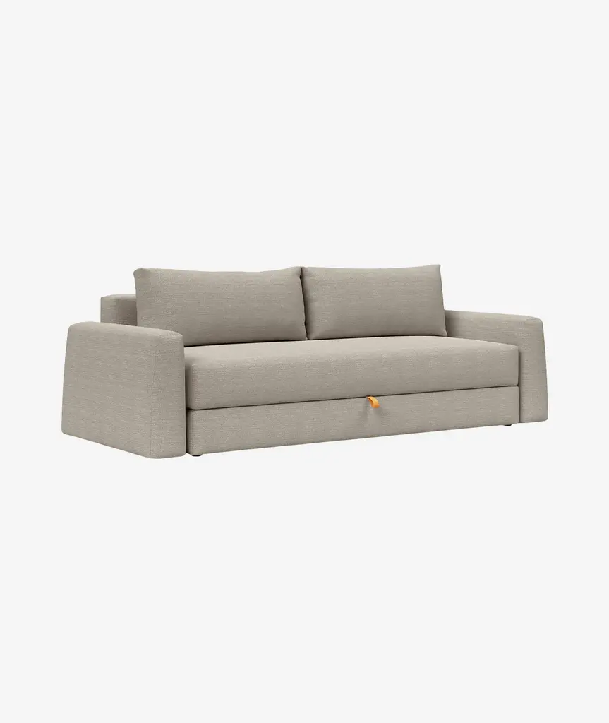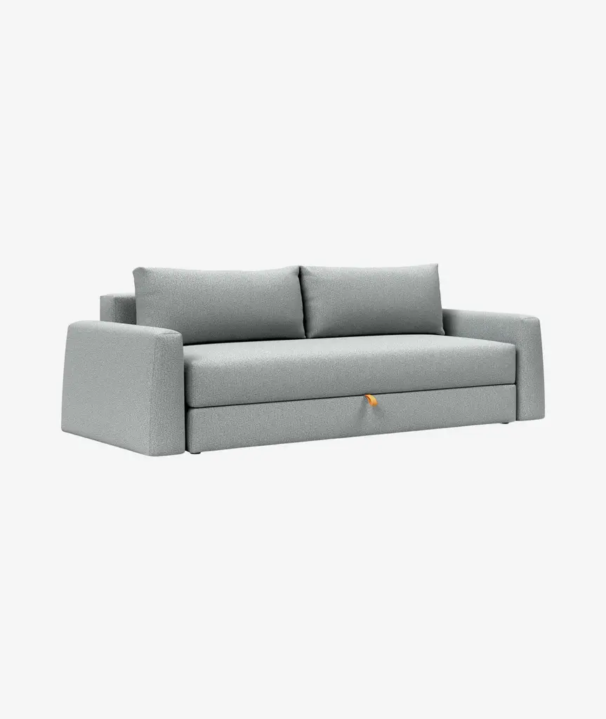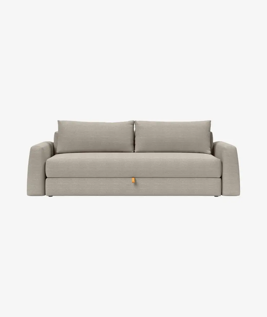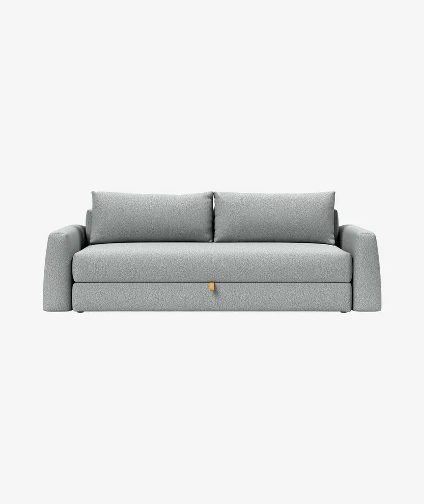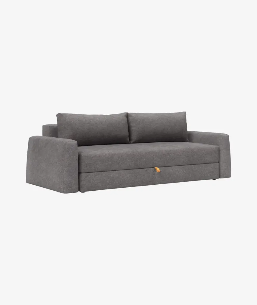 The Cone design is softly rounded and minimalistic. The primary goal of the Cone design has been to combine high comfort, simple sofa to bed conversion and storage. Storage is a main part of the challenge of living in limited square feet, and Cone is conveniently equipped with a large bedding box, designed to help solve exactly this challenge. Cone features legs that automatically fold out when converted into a bed, ensuring a durable, convenient and fast transformation from sofa to occasional bed for every day use. The Cone sofa converts smoothly into a queen-size bed with a long lasting innerspring comfort. If you only require a resting space for a single, simply remove the cushions and a single bed is ready in seconds.
