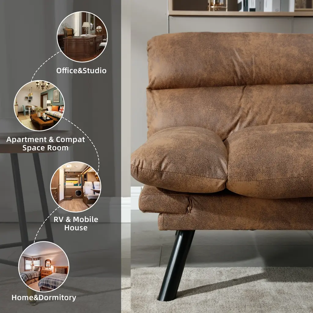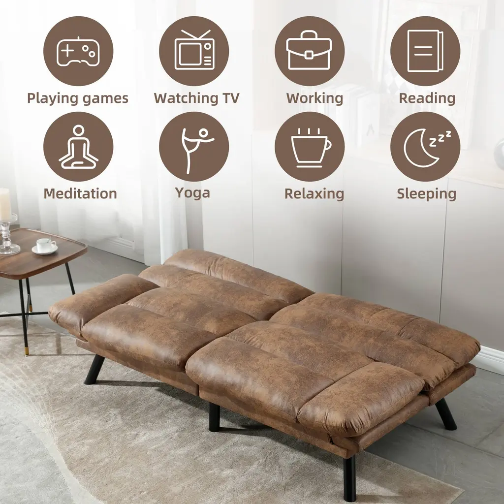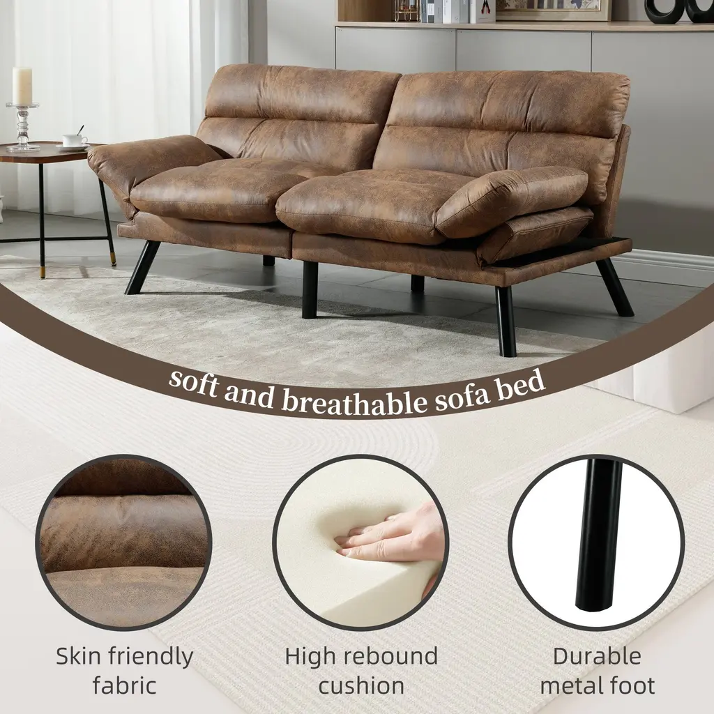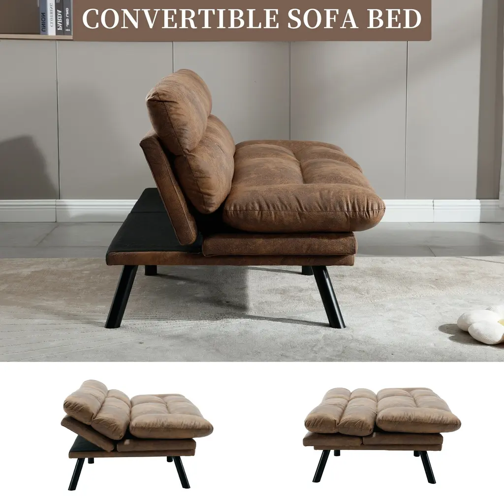 Coolmore Linen/microsuede/teddy Loveseats Convertible Sleeper Sofa With Metal Feet - Coffee