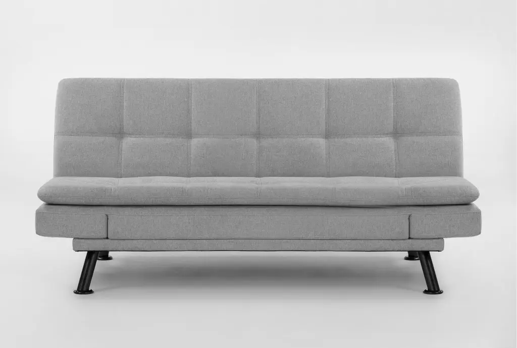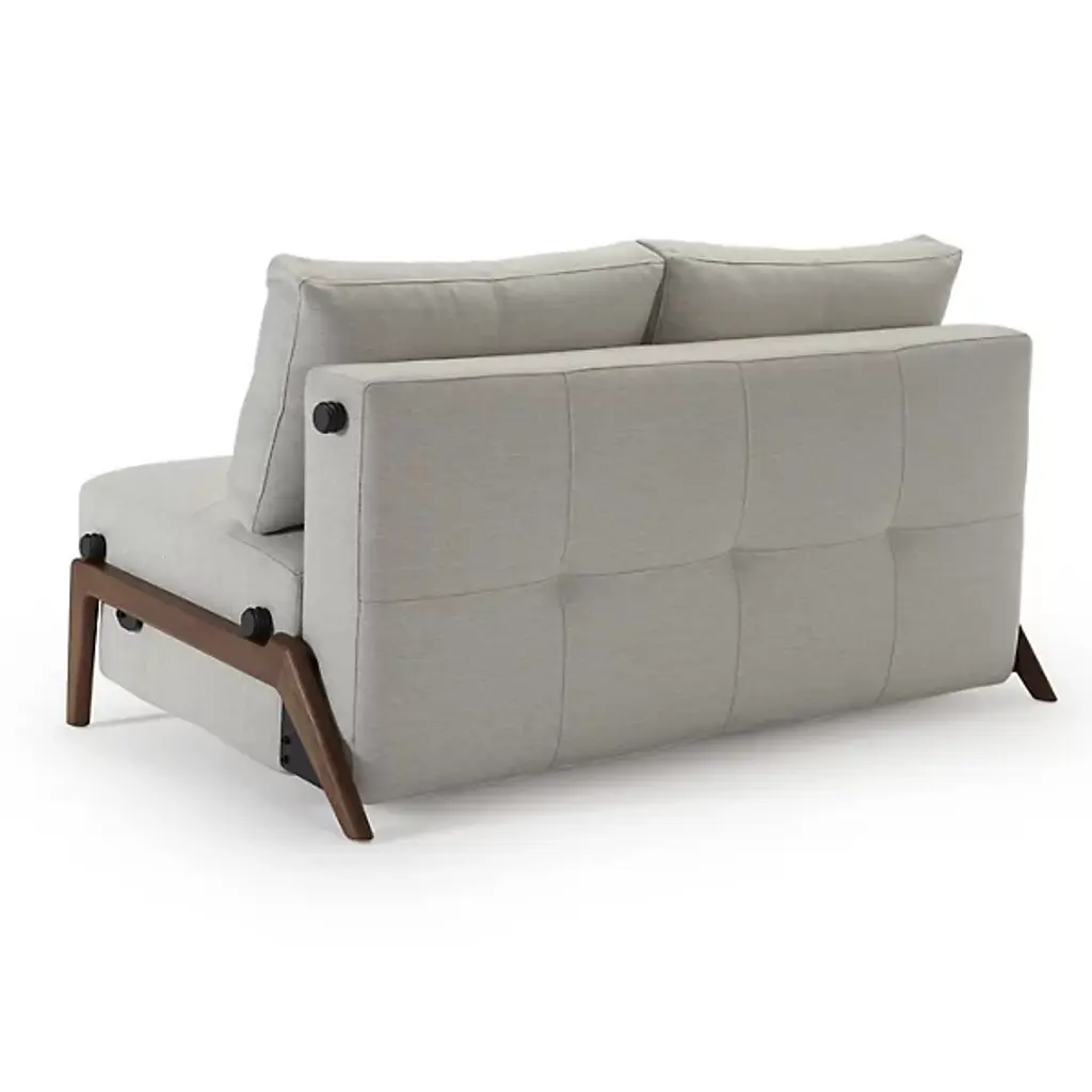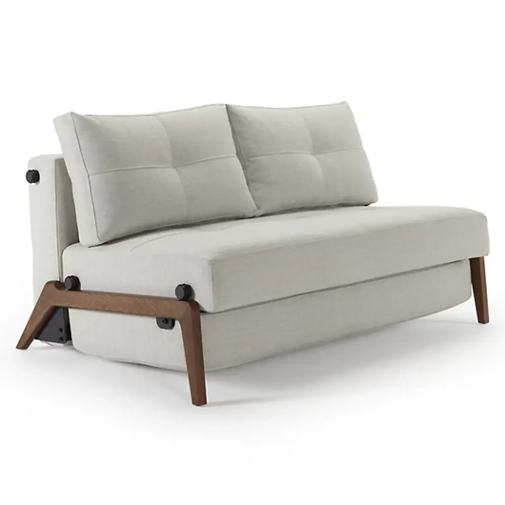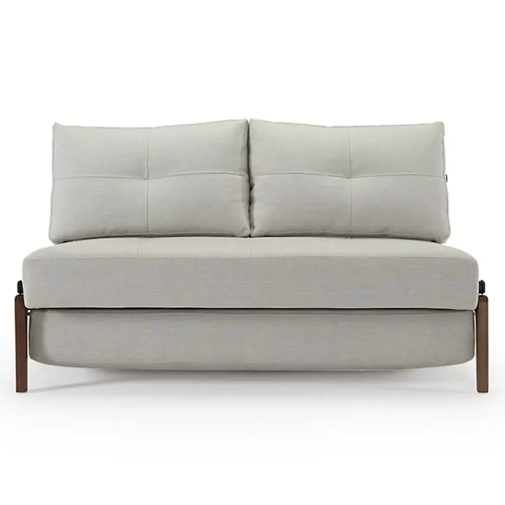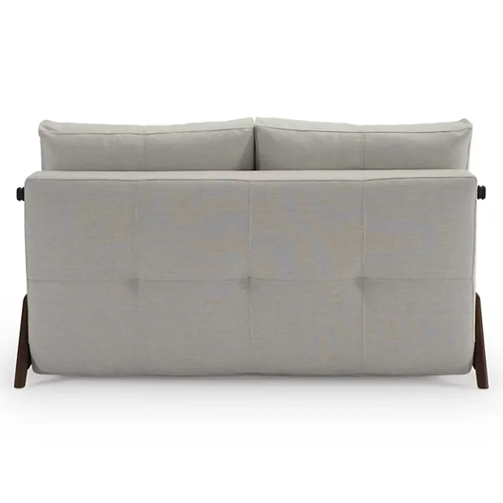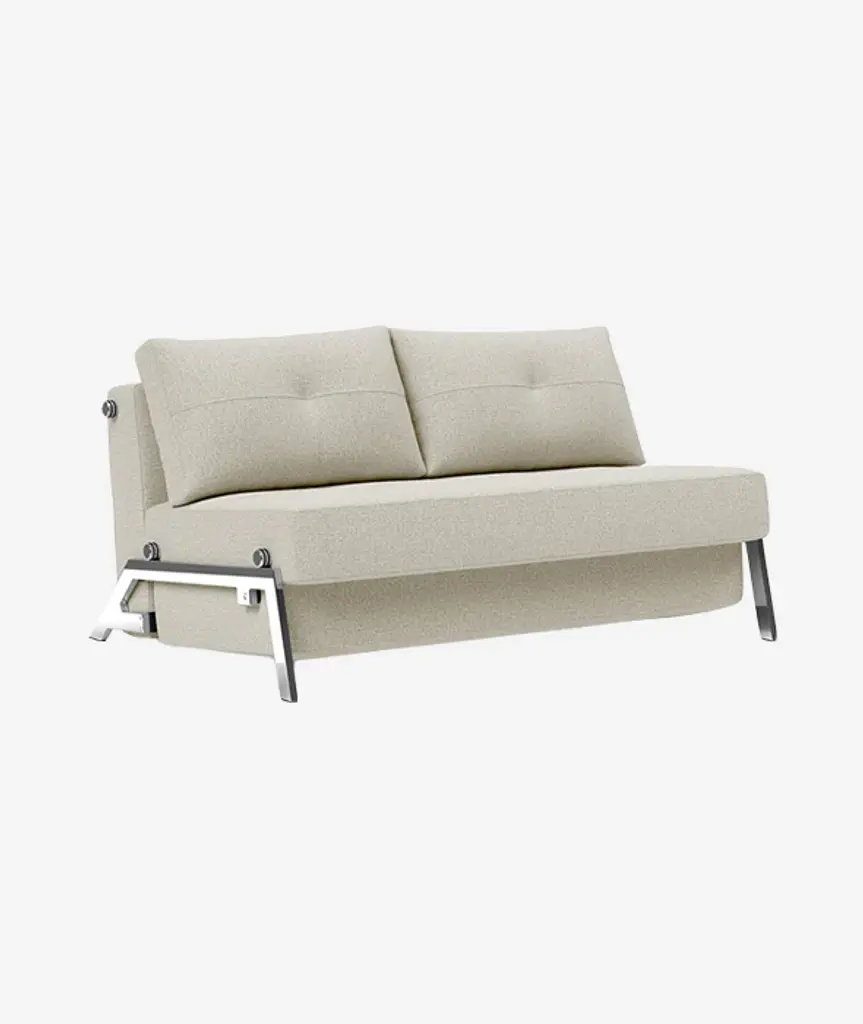 An overnight sensation. The Cubed 02 Sofa bed by Innovation Living is a shining star among space-saving sitting and sleeping solutions. A showstopper from every side, the front-to-back design showcases a tufted back, Steel side buttons and chic angled-back legs. For the curtain call, billowy back pillows and no-sag springs covered with thick Freon-free Foam combine to provide deep seated comfort and a restful night's sleep.