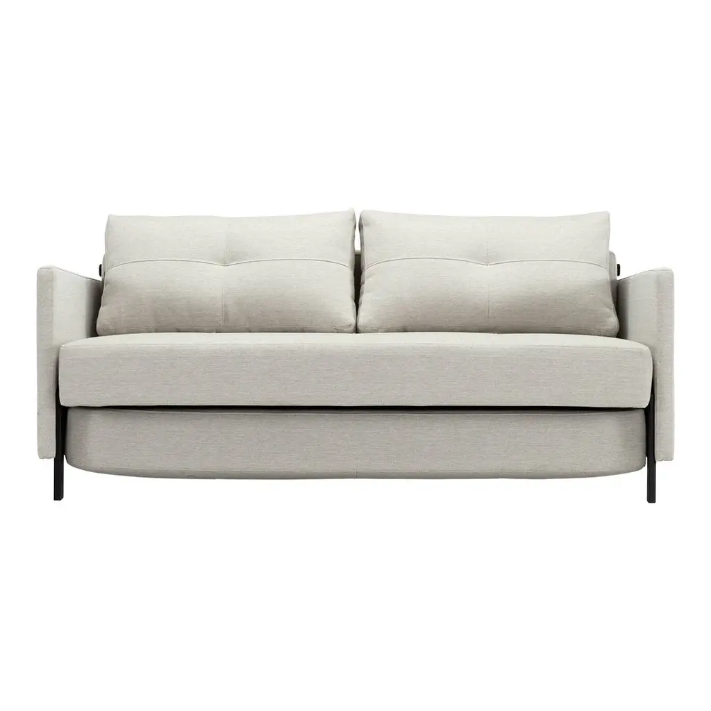 Transform your small space into a cozy retreat with the compact and stylish Cubed 2-Seater Armless Sofa Bed with Wood Legs from Innovation Living. This versatile piece easily converts from a sofa to a comfortable lounger or bed, saving valuable space in apartment or small space living. With a hidden bedding box compartment and fold-out legs, it's the perfect solution for accommodating last-minute guests and storing extra bedding or seasonal items out of sight. Highlights