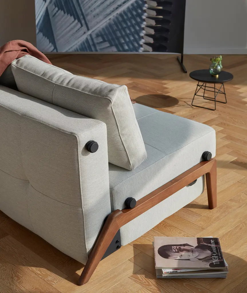 The Cubed sleeper sofa with chrome or wood legs and detailing is a versatile furniture piece for all. Regardless of age, the Cubed's design is a timelessly modern fit whether in the teenage room college dorm, studio apartment, or the suburban guest room. The space saving design is a favorite throughout the world due to its compact size as a sofa, comfortable and spacious bed, easy transformation from sofa to bed, and distinct character.