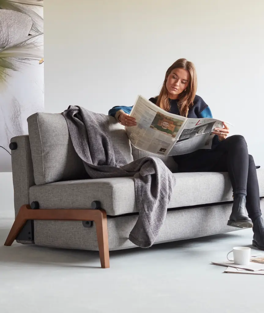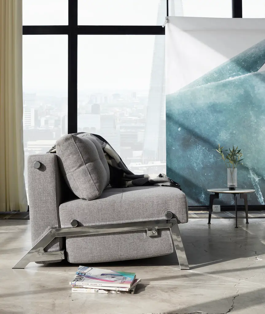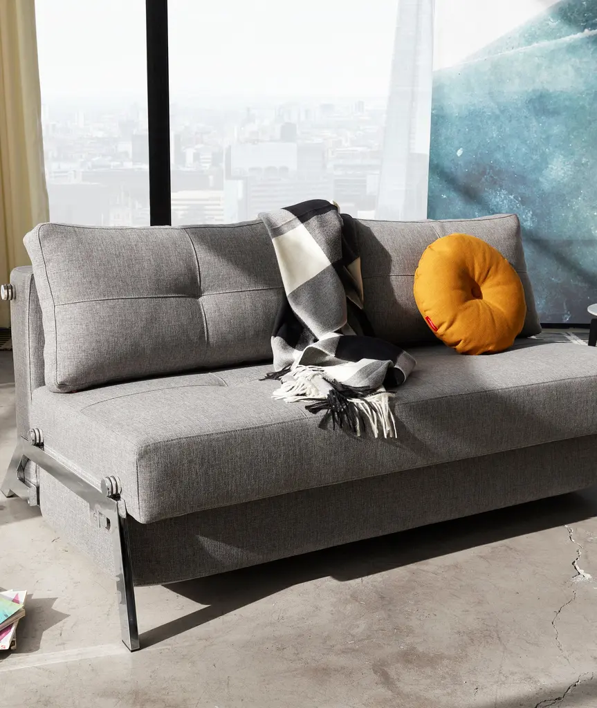The Cubed sleeper sofa with chrome or wood legs and detailing is a versatile furniture piece for all. Regardless of age, the Cubed's design is a timelessly modern fit whether in the teenage room college dorm, studio apartment, or the suburban guest room. The space saving design is a favorite throughout the world due to its compact size as a sofa, comfortable and spacious bed, easy transformation from sofa to bed, and distinct character.