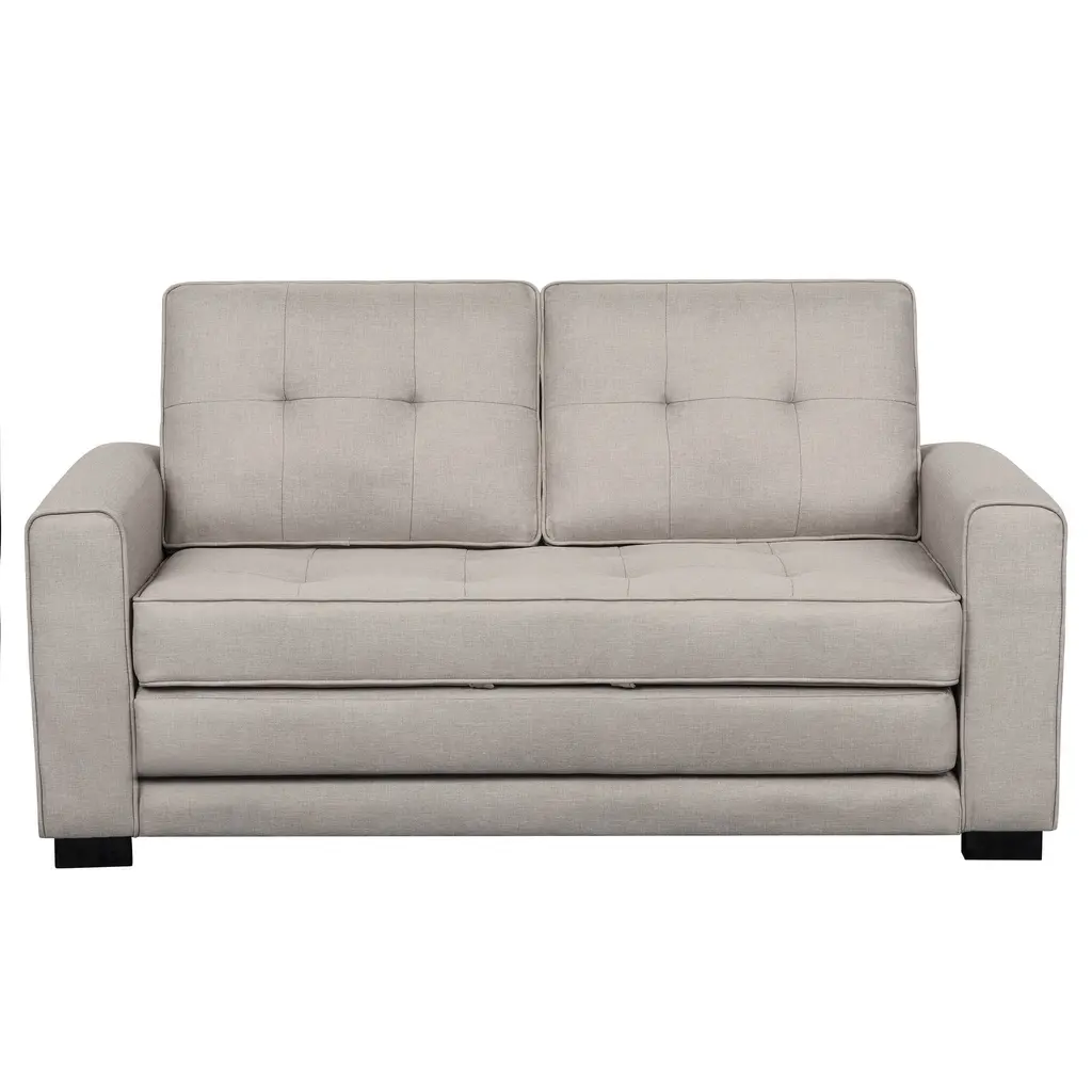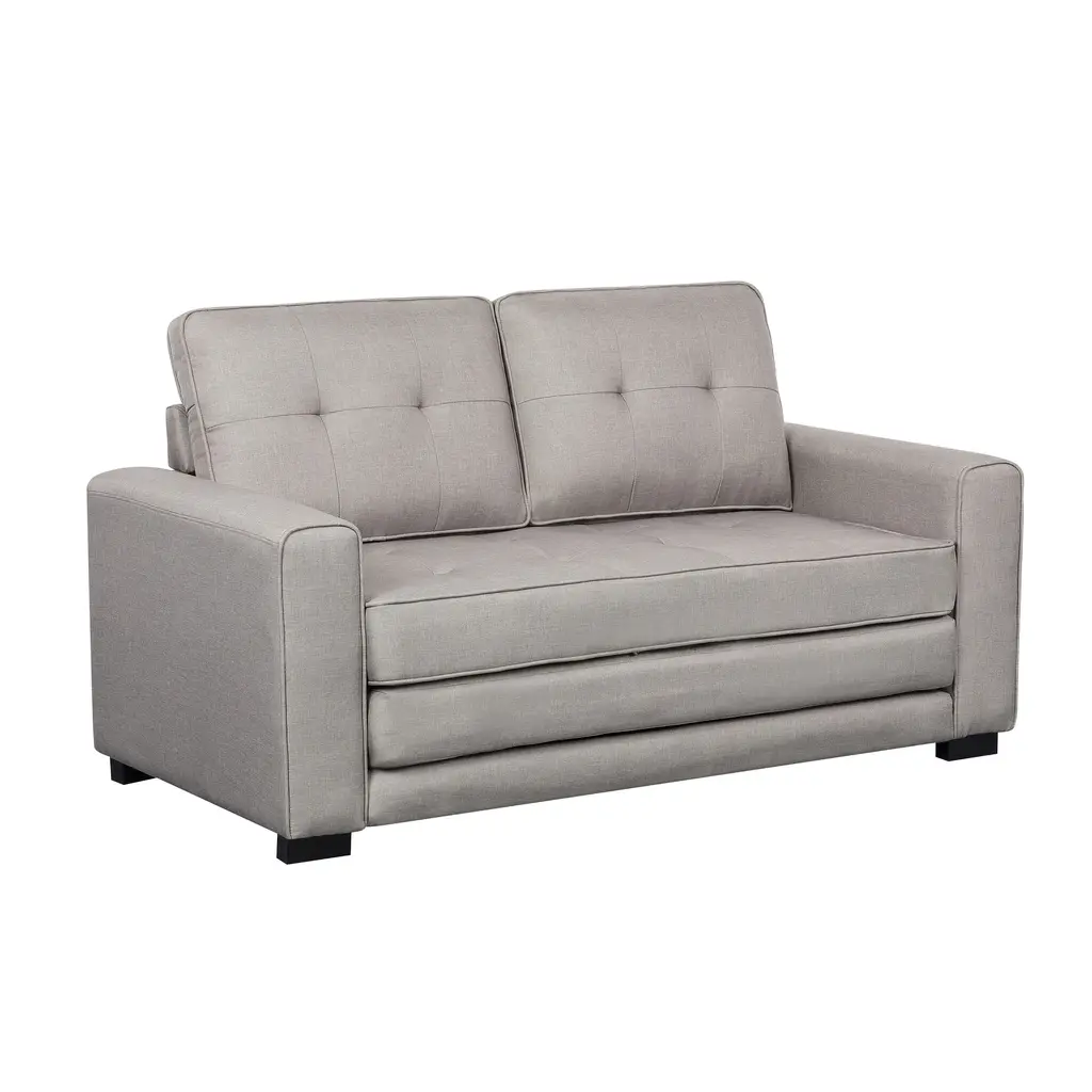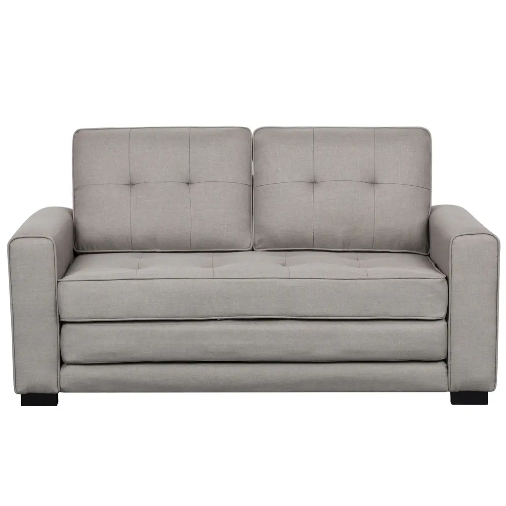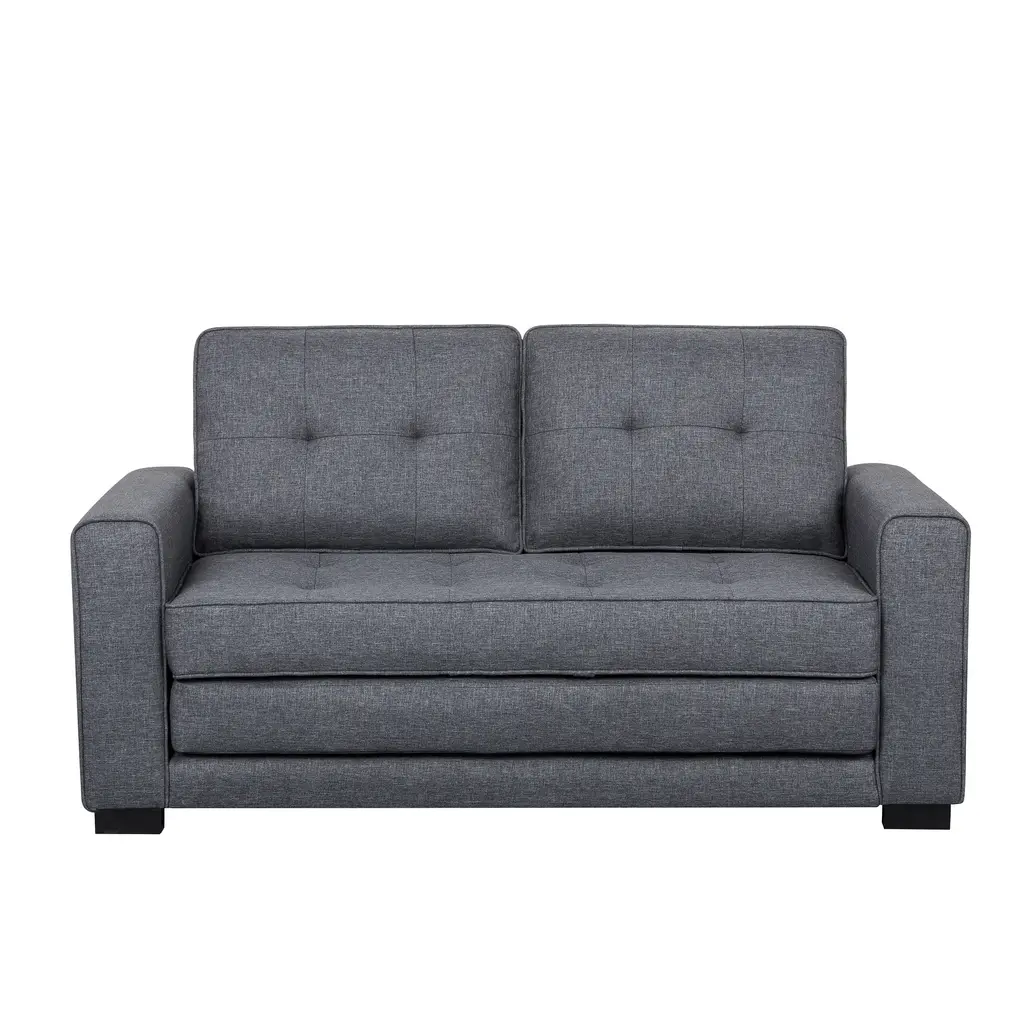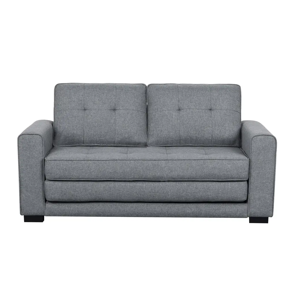 This convertible sleeper loveseat has a wooden frame that makes it tough and durable. It is upholstered in Linen Fabric, which gives you the much needed comfort and rest. The Sofa Bed features a tufted style and sports a stunning charcoal color on a simple yet elegant solid pattern. . It is suitable for residential as well as commercial use.
