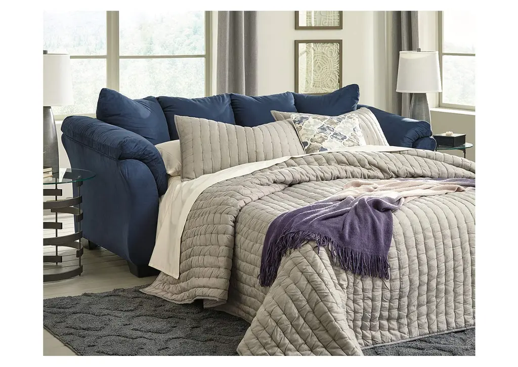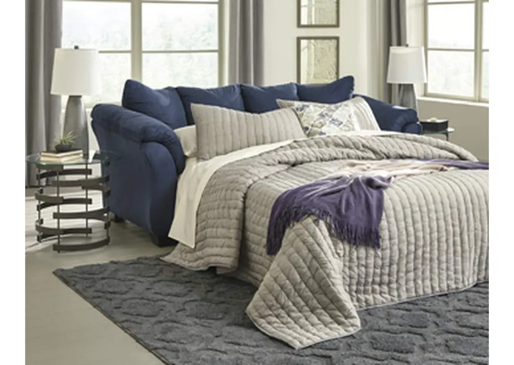 Talk about fine lines and great curves. That’s the beauty of this standout full sofa sleeper—made to suit your appreciation for clean, contemporary style. A striking flared frame, comfy pillow top armrests and an ultra-soft upholstery that holds up to everyday living complete this fashion statement. The pull-out full mattress means you’re fully prepared for overnight guests.