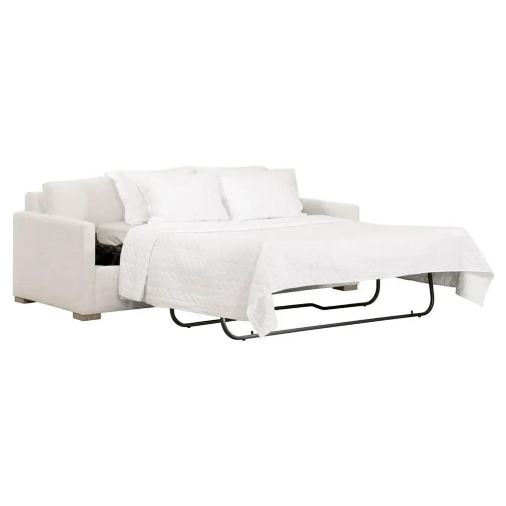 Davis Modern Classic White Upholstered Grey Oak Cushion Back Sleeper Sofa - 86"w