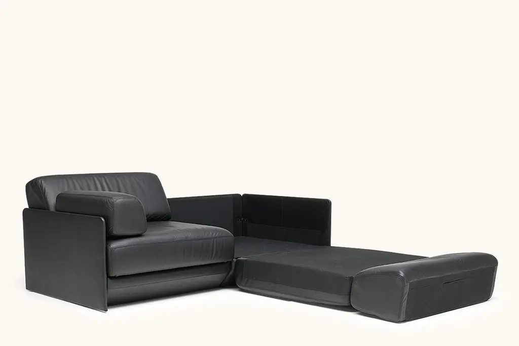 DS-76 was launched as early as 1972, when it was considered revolutionary, no sofa bed could manage with a simpler mechanism: in a few simple steps, the model could be converted into a guest bed without mechanical support. We are now building on this success and presenting a new edition of the popular model.A special attraction of the DS-76 is the softly designed upholstery. Here the leather is pulled over the upholstery with less tension, so that a nice wrinkling is generated, for a pure leather experience like in good old times. By this characteristic a unique seat experience can be created at the same time, from the haptics over the comfort up to the De Sede typical leather odor.Additional information:Material: LeatherCategory: Select, blackType: Nappa leather, lightly pigmentedThickness 1.2-1.4 mmCharacteristics: Meticulous processing preserves the natural quality, with a characteristic pattern of creases, grain and pores. After tanning, it is dyed with a special finish to maintain the natural aura while also offering improved protection. It undergoes visible ageing, lending it an endearing patina.Dimensions: 188 W x 97 D x 75 H cmAvailable in other upholstery options: Living, touch, naturale, club, coloral, craft, velour.
