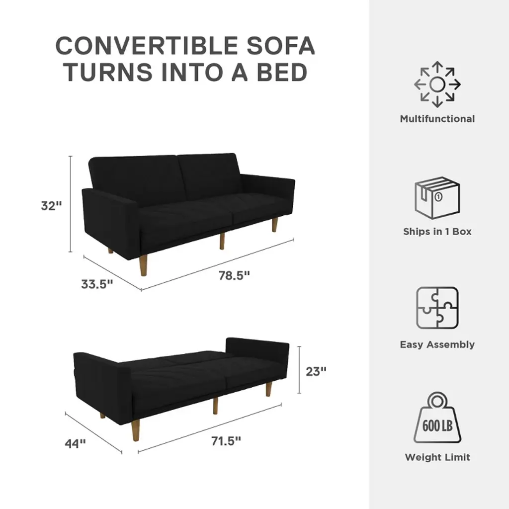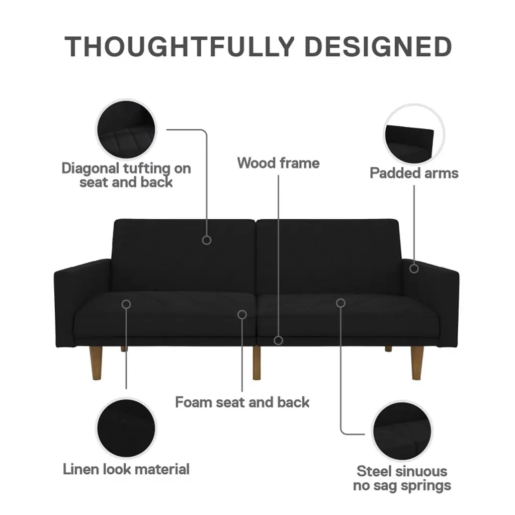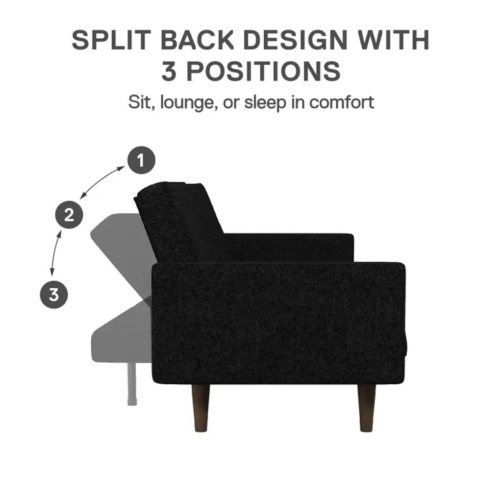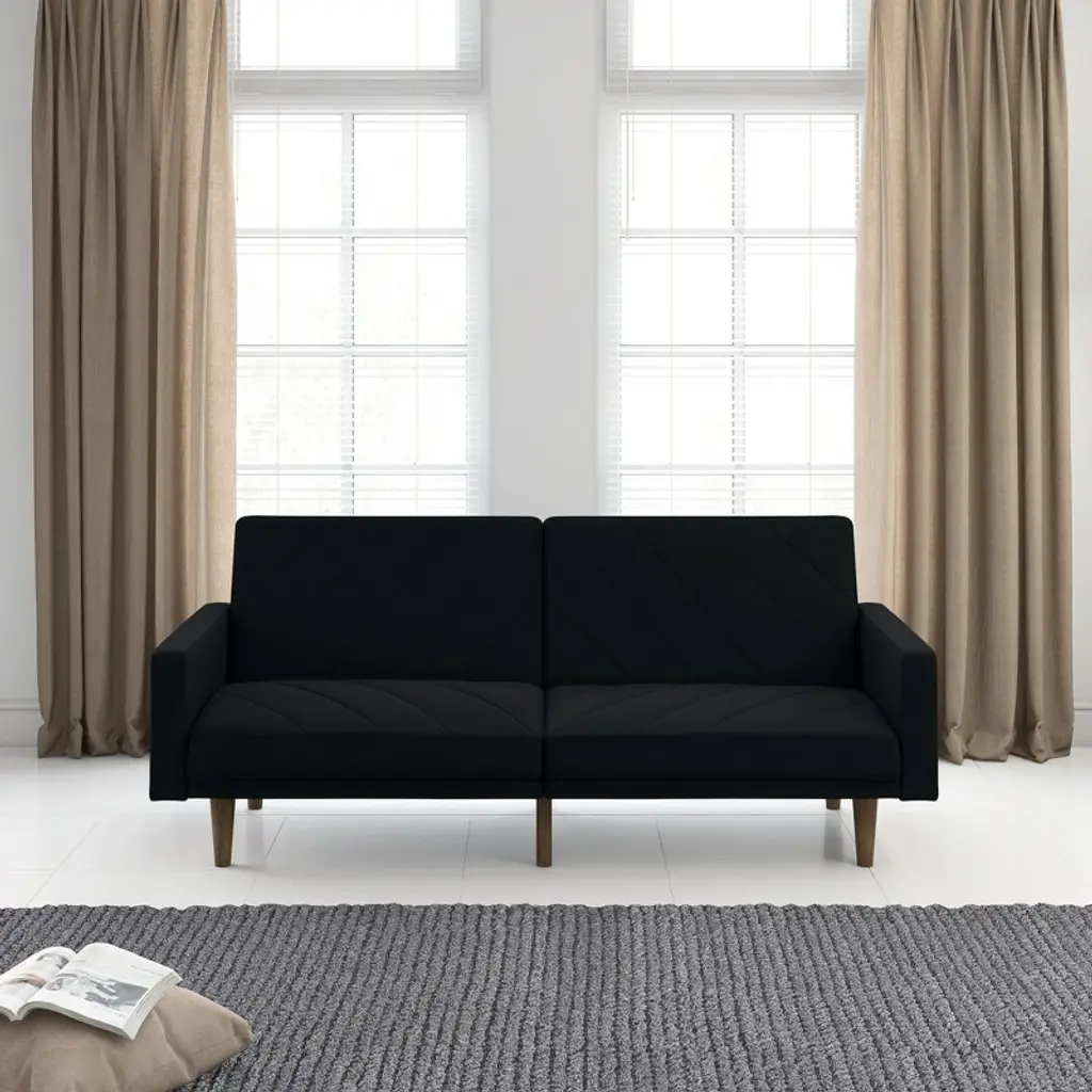 New trends in furniture design are bringing back the days of bold lines, low-profile shapes and wood accents. The Paxson Futon combines all three for a look that will add a little modern retro to your home! Choose from a variety of finishes with intricate diagonal stitching--a real mid-century must-have. The rounded solid wood legs add a touch of warmth and offer plenty of extra support. Plus the split back design of this sleeper sofa is made to offer each guest their own level of comfort, from sitting up to lounging back. Or lay flat both seat back cushions to create a comfortable place for overnight guests to sleep. The Paxson is ideal for small spaces while always making a big, bold statement. We've also included padding under the feet so your floors will always look great!