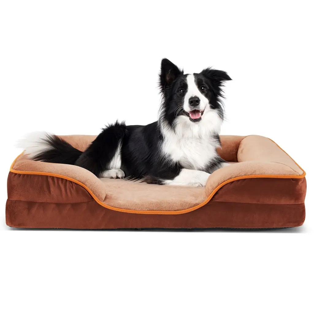 Dog Bed With Memory Foam, Waterproof Pet Sofa Bed With Removable Washable Cover - L - Brown