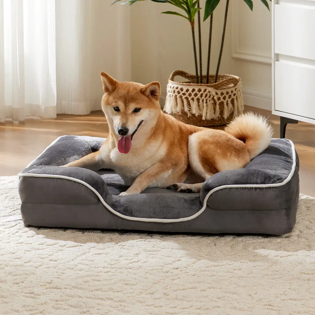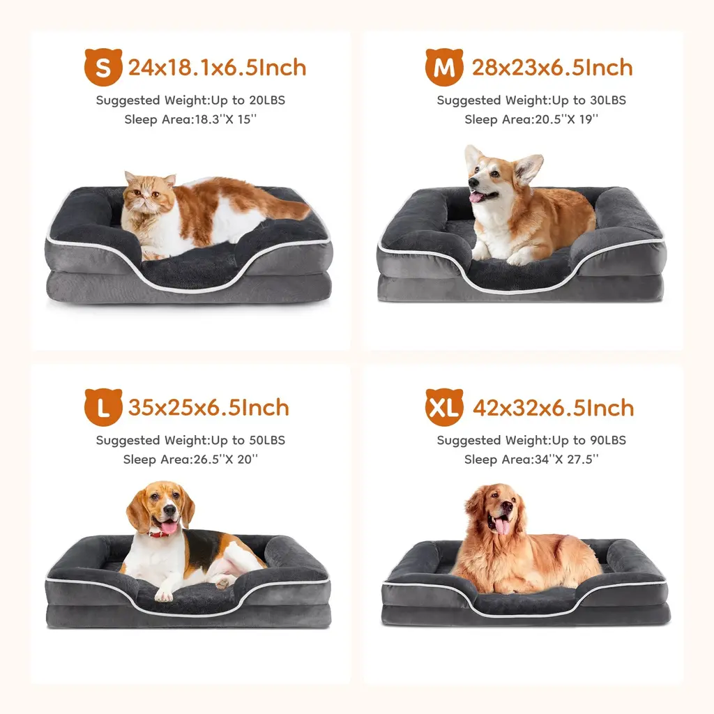Dog Bed With Memory Foam, Waterproof Pet Sofa Bed With Removable Washable Cover - L - Grey