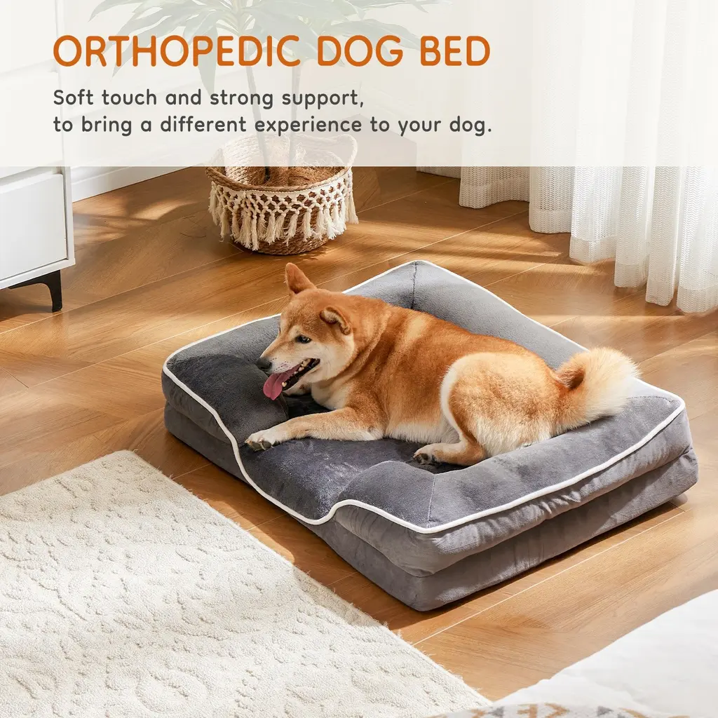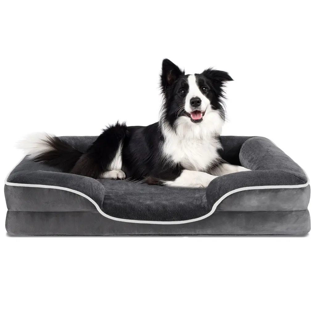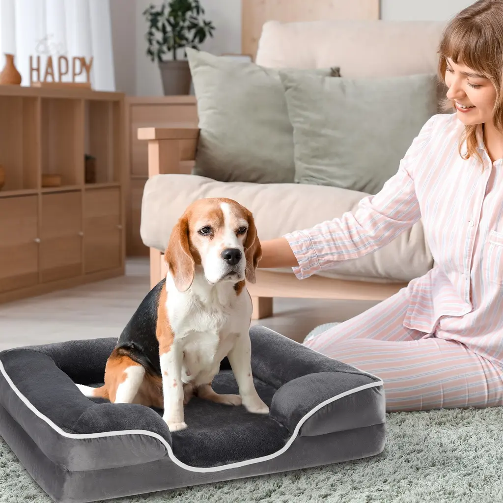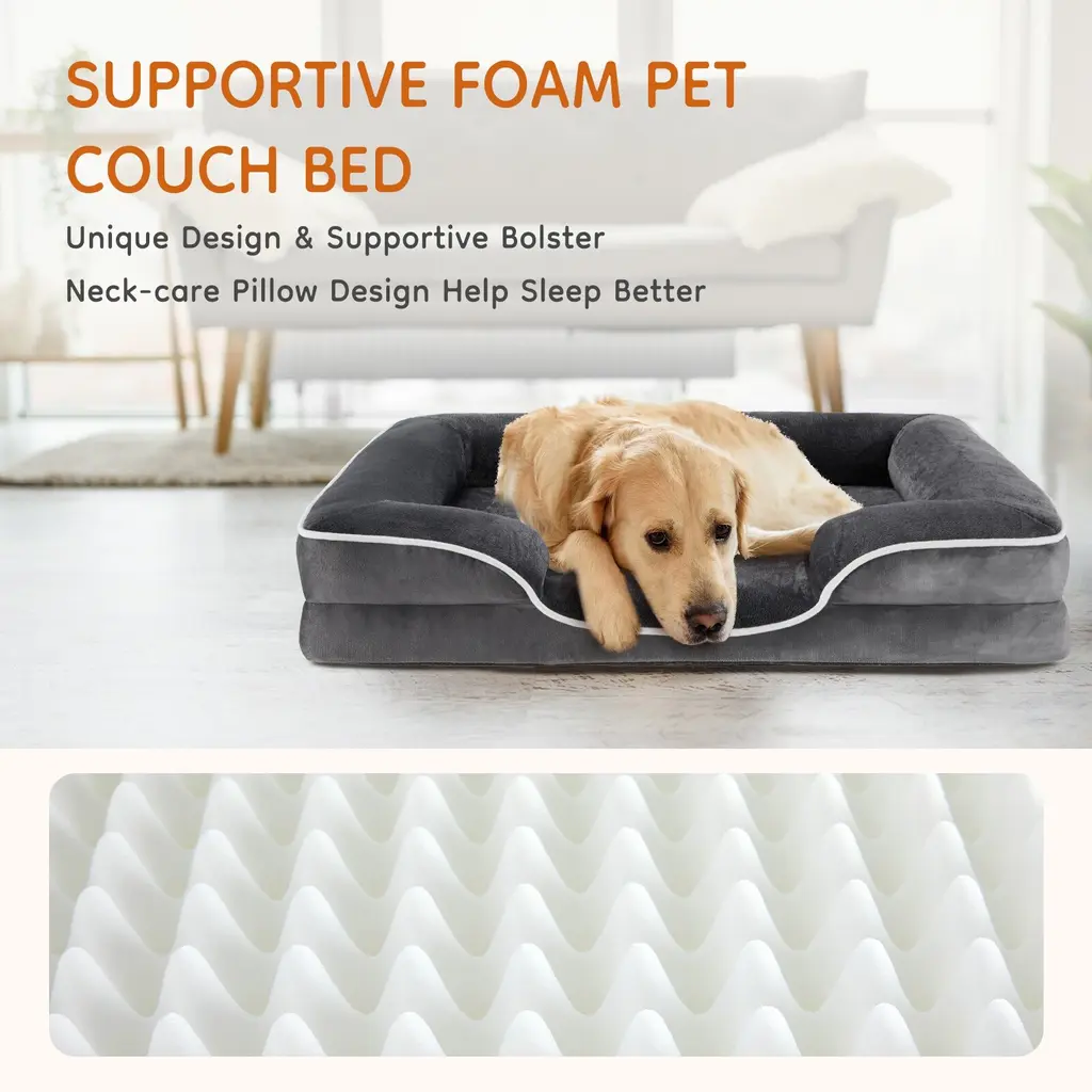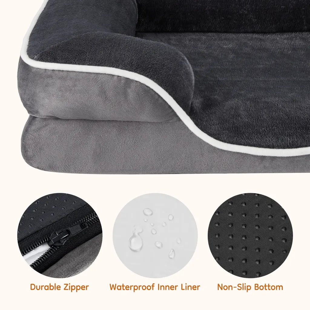 Dog Bed With Memory Foam, Waterproof Pet Sofa Bed With Removable Washable Cover - M - Grey