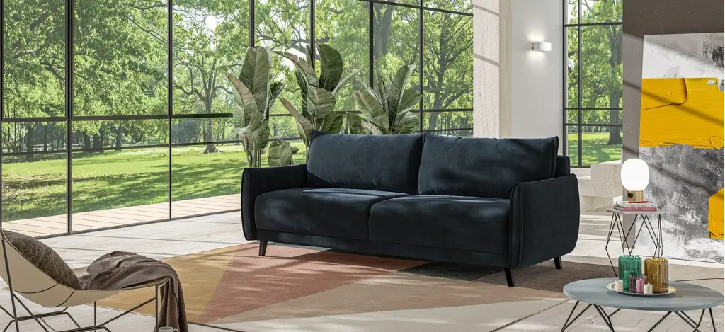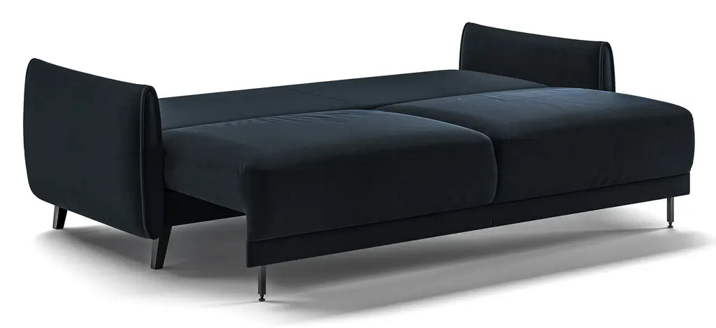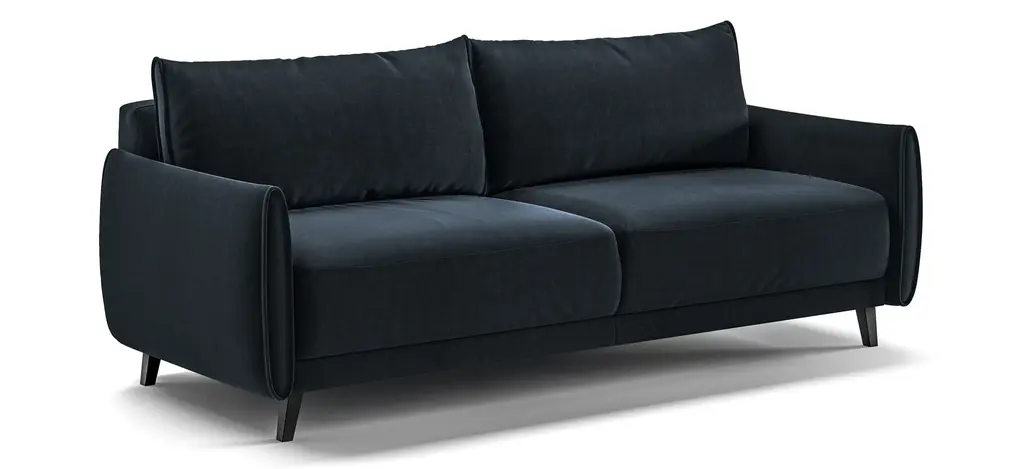 Dolphin Full XL Sofa Sleeper made with narrow rooms in mind, only opening 18 inches into the room. Welting of the arms and the ability to sleep arm to arm; the Dolphin has comfort. A finished storage box under the seat offers additional storage. High legs take this design off the floor and give you a new heightened experience.