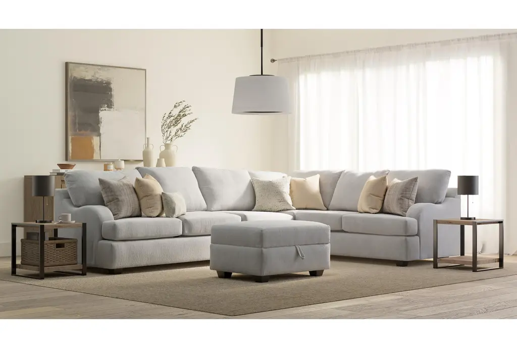 The Esteban III Dove 2 Piece Sectional With Left Arm Facing Queen Sleeper Sofa & Ottoman is the perfect addition to any living room. This versatile sectional offers both comfort and functionality with its left arm facing queen sleeper sofa and matching ottoman. The neutral beige fabric ensures it will complement any decor.