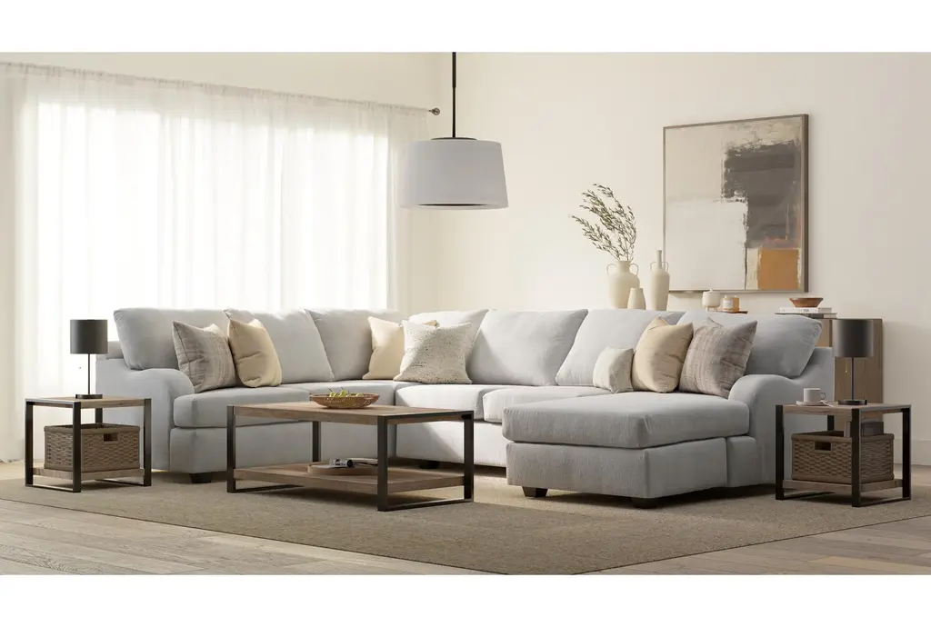 The Esteban III Dove 2 Piece Sectional with Right Arm Facing Queen Sleeper Sofa Chaise offers the perfect combination of comfort and functionality for your living room. Upholstered in soft beige fabric, this sectional not only provides ample seating but also features a convenient pull-out queen sleeper for guests. The right-facing chaise adds a touch of versatility, allowing you to lounge in style.