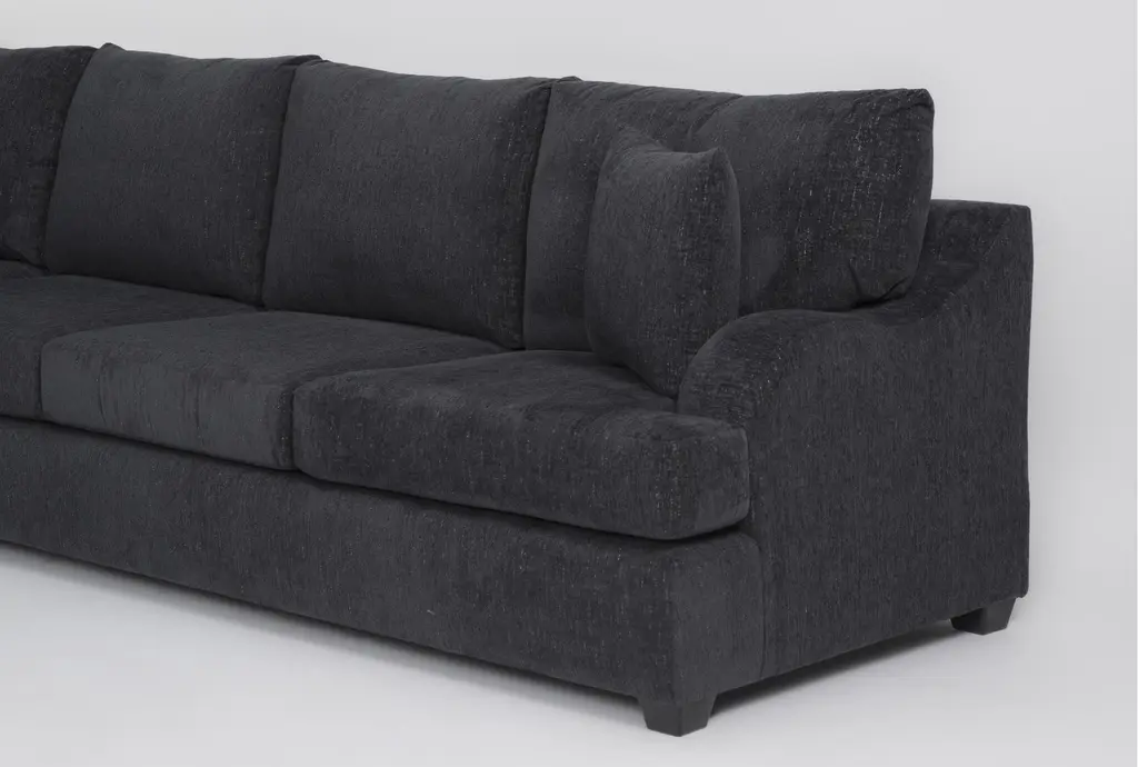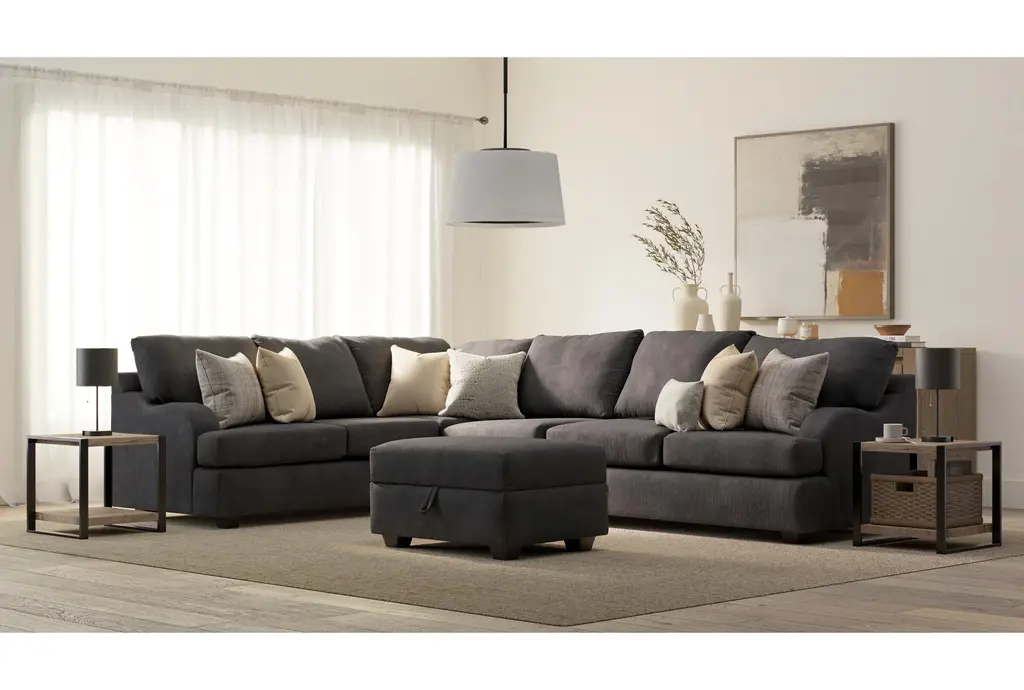 Introducing the Esteban III Midnight Black 2 Piece Sectional with Right Arm Facing Queen Sleeper Sofa & Ottoman, perfect for your living room. This casual design provides both comfort and versatility, making it an ideal choice for family gatherings or relaxing movie nights. Upholstered in durable black fabric, this sectional ensures a timeless addition to your home.