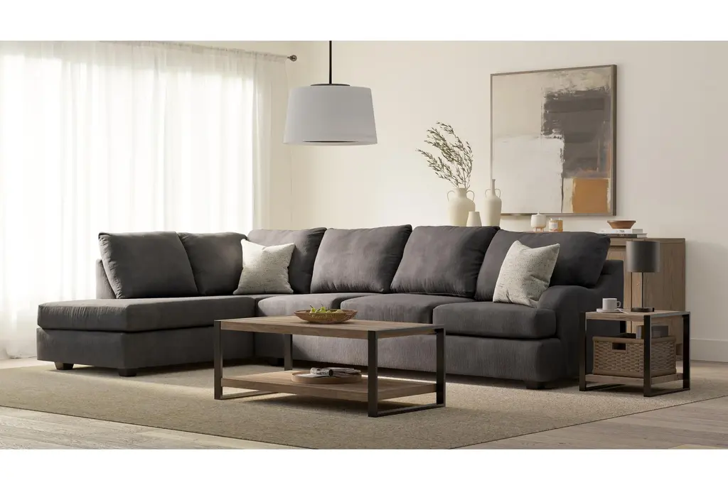 With plenty of seating options that welcome you to spread out and curl up, our Esteban collection offers a sense of ease and relaxation. The Esteban sectional features a soft silhouette that inspires inviting comfort and casual appeal you're sure to love. Made by and for Living Spaces to offer the utmost quality and value, the piece is distinguished by ultra-soft and durable polyester chenille fabric, plus loose reversible cushions that ensure even wear and longevity. Multiple colors and configurations allow you to choose the perfect fit for your space.