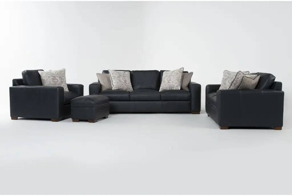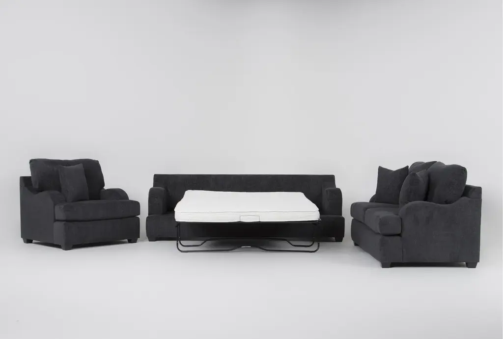 Esteban Iii Midnight Black 3 Piece Queen Sleeper Sofa Loveseat Chair Set