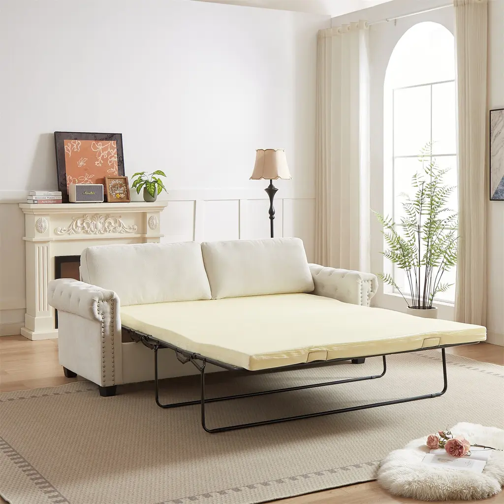 Fabric Convertible Sleeper Sofa Bed With Folding Mattress - Beige