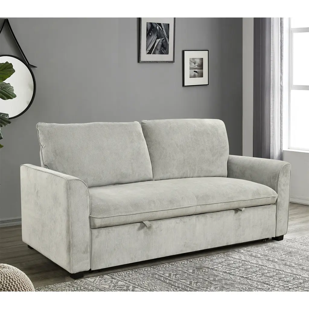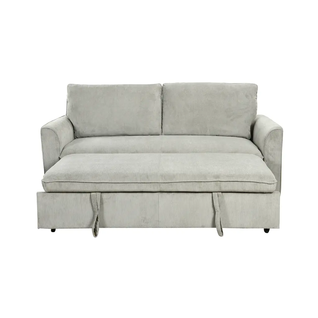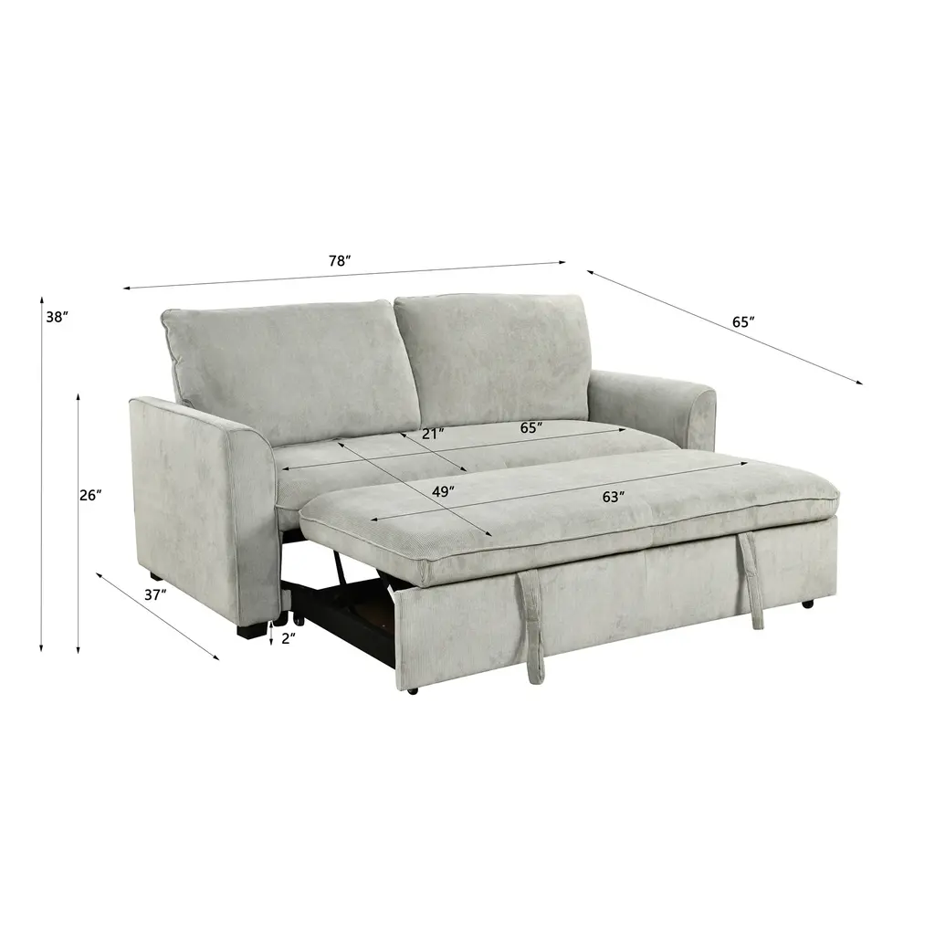 Fabric Convertible Sleeper Sofa Bed With Reclining Backrest - Light Grey