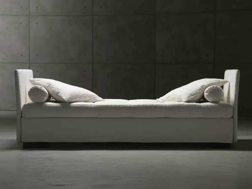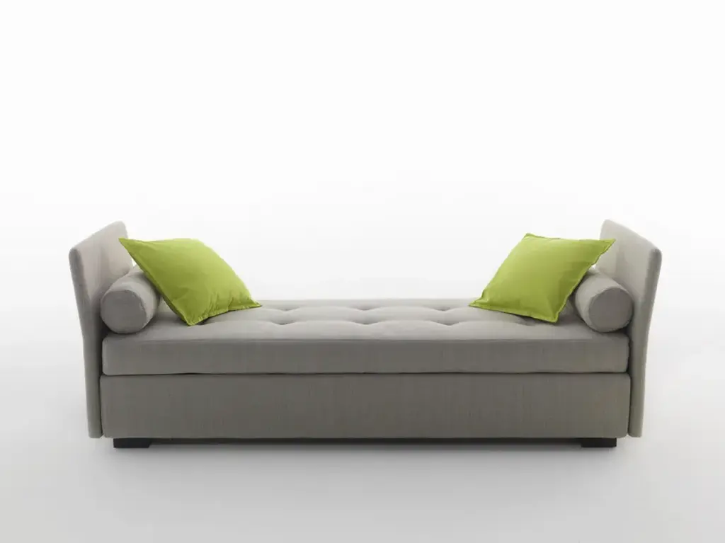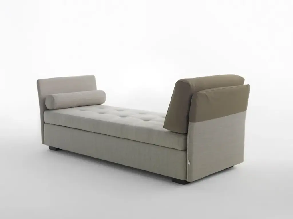 Isoleuse is part of the Isole Figi programme: a collection of single beds/sofa beds. Until 2018, the product was marketed under the brand name Orizzonti Italia.The features of the programme> 7 models (Isola - Isolina - Isolino - Isoletto - Isoleuse - Isolona - Isolotto)> 3 sizes for the seat cushion (cm 80 x 195 - cm 88 x 208 - cm 98 x 208)> 2 different seat cushions (seat with buttons - seat without buttons)or, as an alternative to the seat cushion> 2 different types of mattress (Sit & Sleep Standard - Sit & Sleep Memory) that can be combined with an upholstered bedspread with zips on the cornersmake Isole Figi a versatile product that can be adapted to any environment or use: from a large living room to a small utility room, from a child's bedroom to a hotel room. All Figi beds can be fitted with a lift-up bedstead and storage box on request.The feet are made of solid beech and can be finished in mocha, natural, walnut or white lacquer.