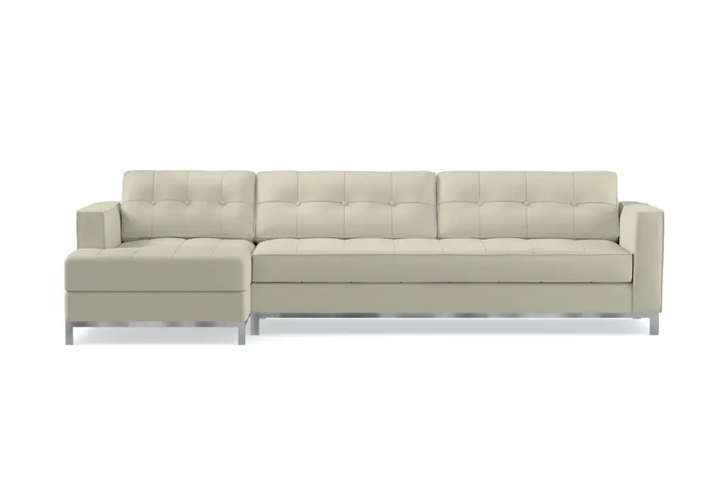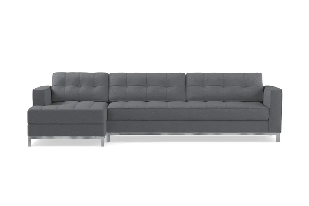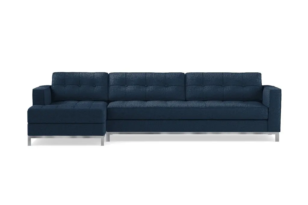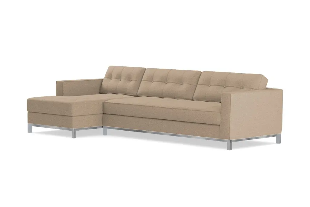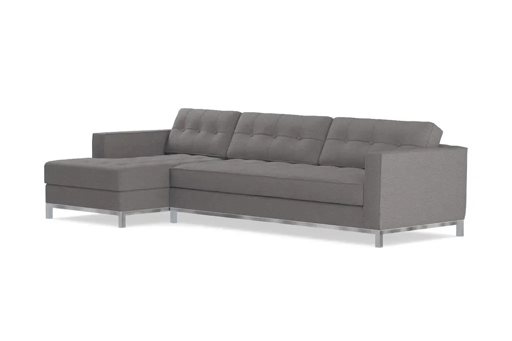 The Fillmore 2 Piece Sleeper Sectional Sofa is a contemporary stunner that features an in-line metal base and legs, button tufted back and seat cushions, and a luxurious 25" seating depth. Even better, the Fillmore is a full-size sleeper sofa that features a Deluxe Innerspring Mattress. The Fillmore is available to be upholstered in any of Apt2B's robust line of kid friendly and pet friendly fabrics.