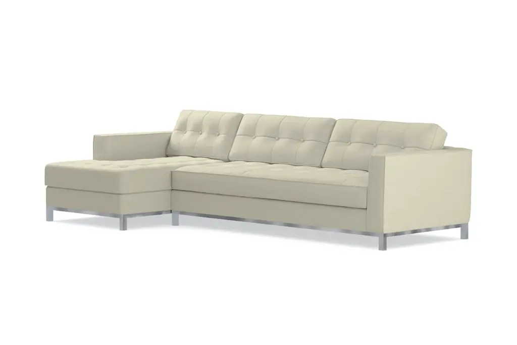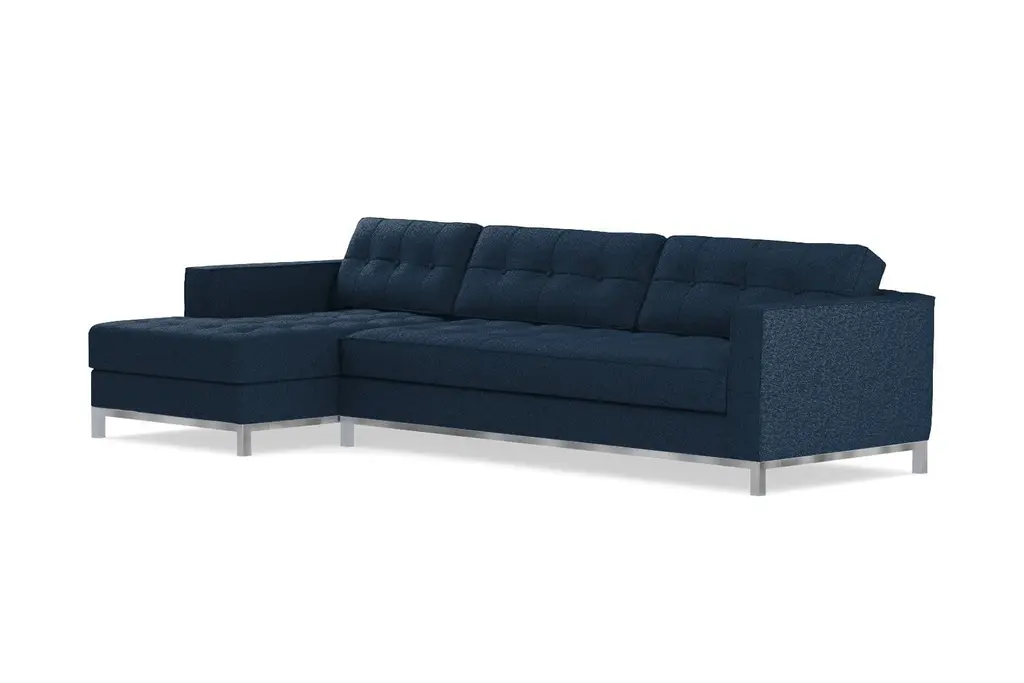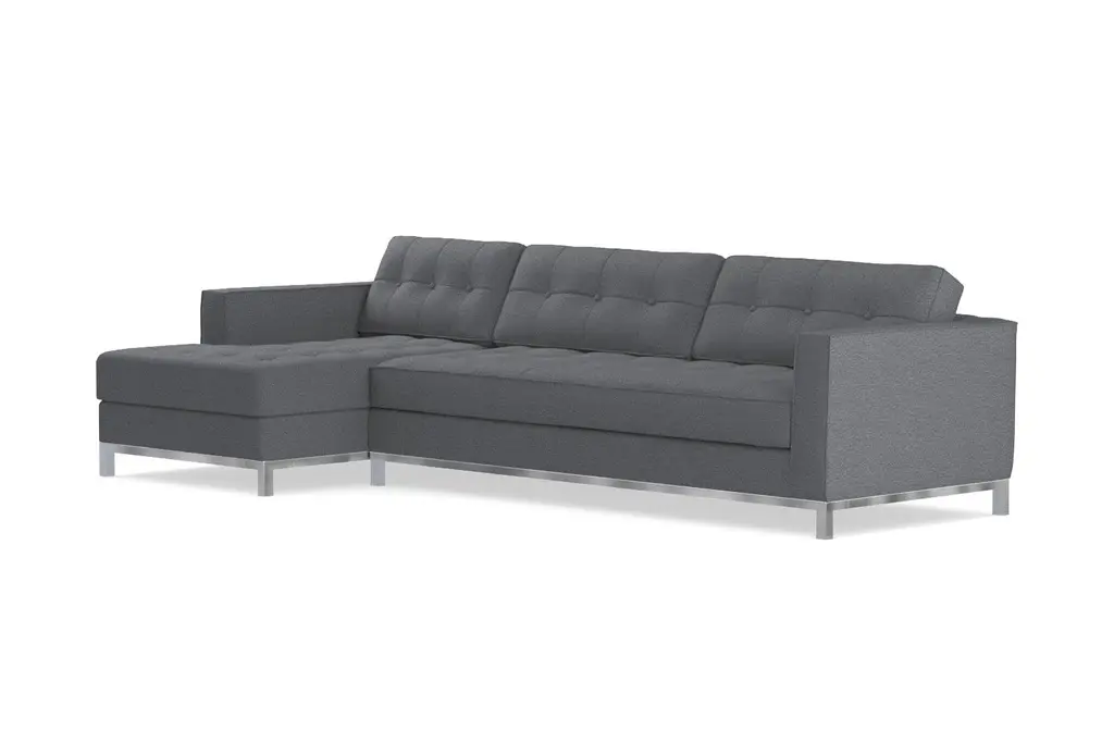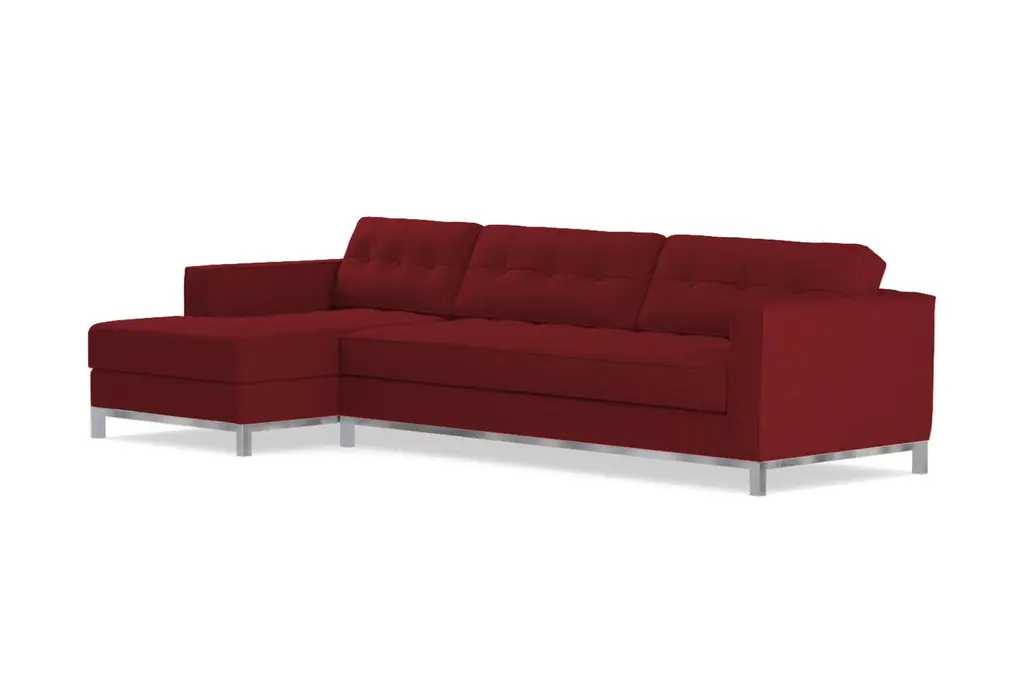 The Fillmore 2 Piece Sleeper Sectional Sofa is a contemporary stunner that features an in-line metal base and legs, button tufted back and seat cushions, and a luxurious 25" seating depth. Even better, the Fillmore is a full-size sleeper sofa that features a plush Memory Foam Mattress. The Fillmore is available to be upholstered in any of Apt2B's robust line of kid friendly and pet friendly fabrics.