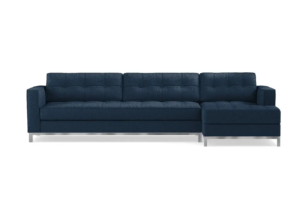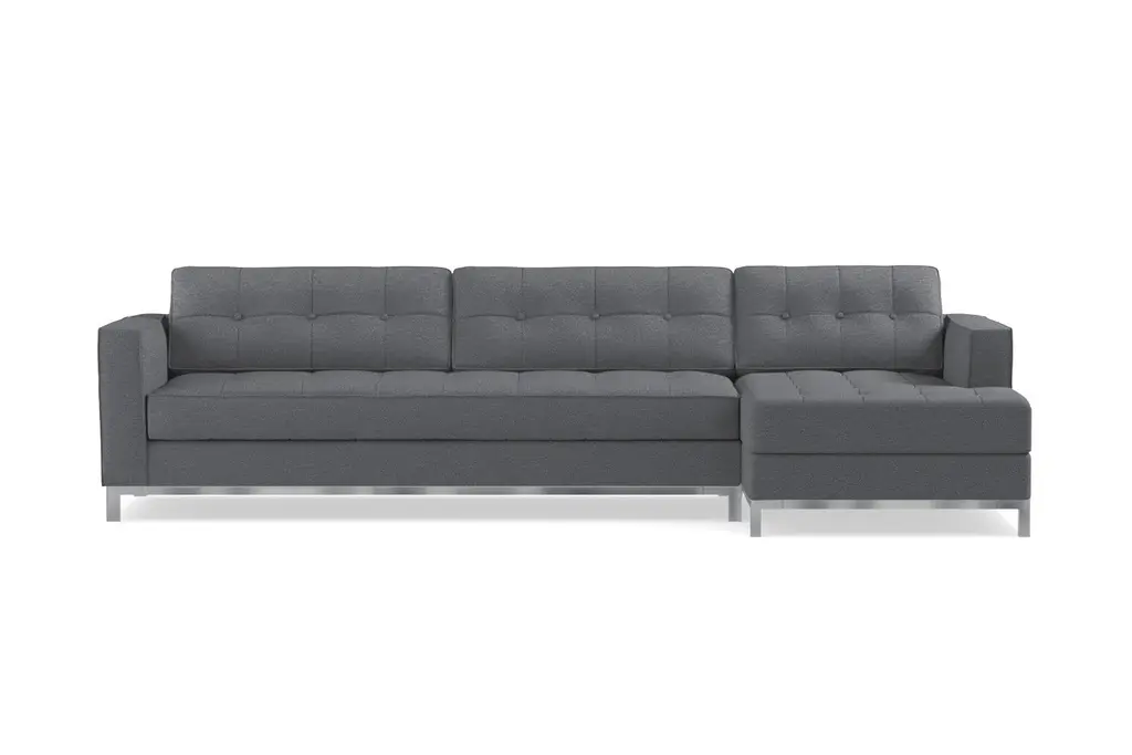The Fillmore 2 Piece Sleeper Sectional Sofa is a contemporary stunner that features an in-line metal base and legs, button tufted back and seat cushions, and a luxurious 25" seating depth. Even better, the Fillmore is a full-size sleeper sofa that features a plush Memory Foam Mattress. The Fillmore is available to be upholstered in any of Apt2B's robust line of kid friendly and pet friendly fabrics.