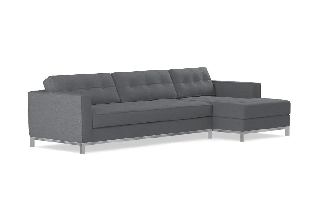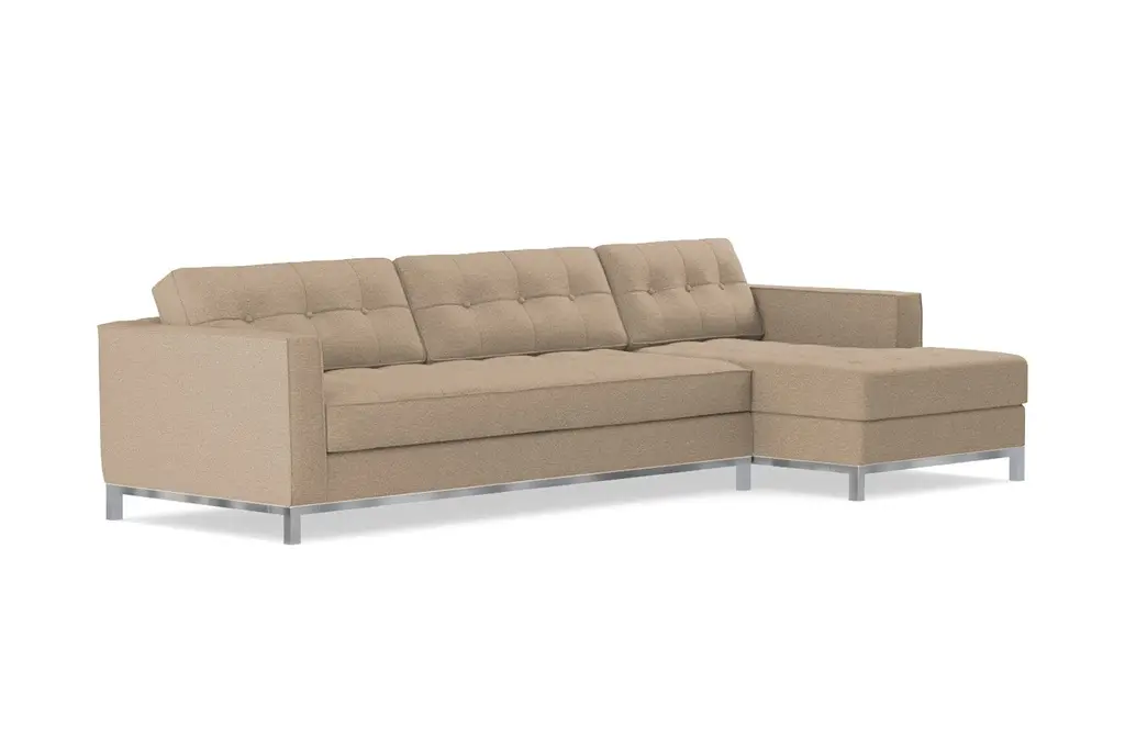 The Fillmore 2 Piece Sleeper Sectional Sofa is a contemporary stunner that features an in-line metal base and legs, button tufted back and seat cushions, and a luxurious 25" seating depth. Even better, the Fillmore is a full-size sleeper sofa that features a plush Memory Foam Mattress. The Fillmore is available to be upholstered in any of Apt2B's robust line of kid friendly and pet friendly fabrics.