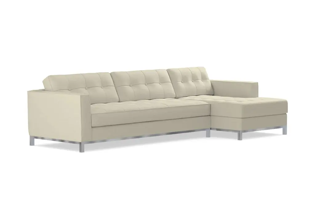 The Fillmore 2 Piece Sleeper Sectional Sofa is a contemporary stunner that features an in-line metal base and legs, button tufted back and seat cushions, and a luxurious 25" seating depth. Even better, the Fillmore is a full-size sleeper sofa that features a plush Memory Foam Mattress. The Fillmore is available to be upholstered in any of Apt2B's robust line of kid friendly and pet friendly fabrics.