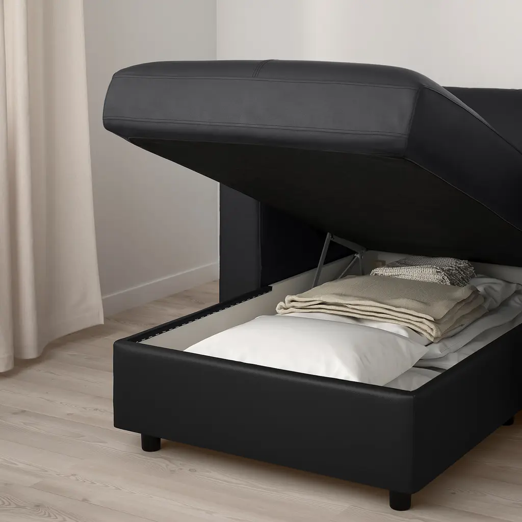 FINNALA 3-seat sleeper sofa with chaise - Grann/Bomstad black. This comfortable sofa has pocket spring seat cushions with high resilience foam and a top layer of wadding. It provides a nice comfort and support for your body while maintaining the shape of the seat cushions.