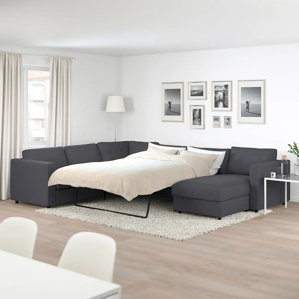 FINNALA Corner sleeper sofa, 5-seat - with chaise/Gunnared medium gray. This comfortable sofa has pocket spring seat cushions with high resilience foam and a top layer of wadding. It provides a nice comfort and support for your body while maintaining the shape of the seat cushions.