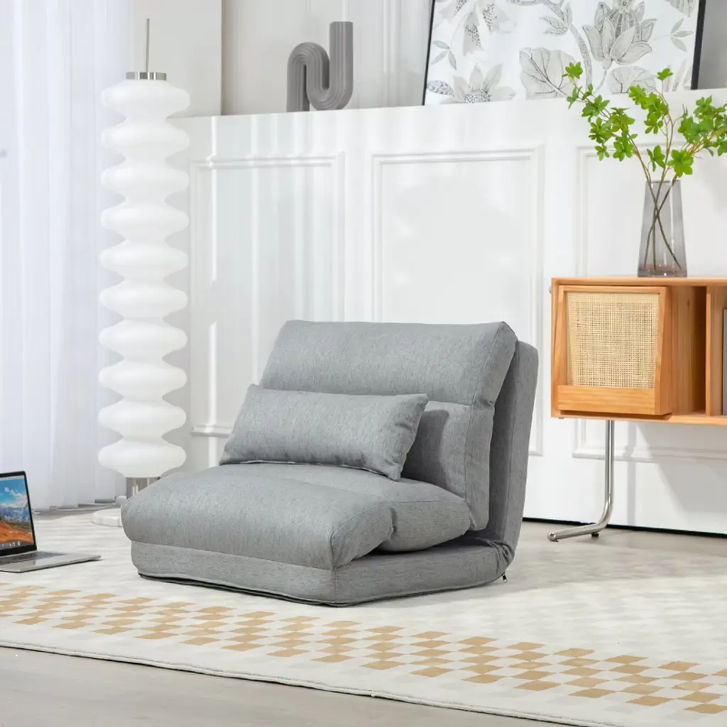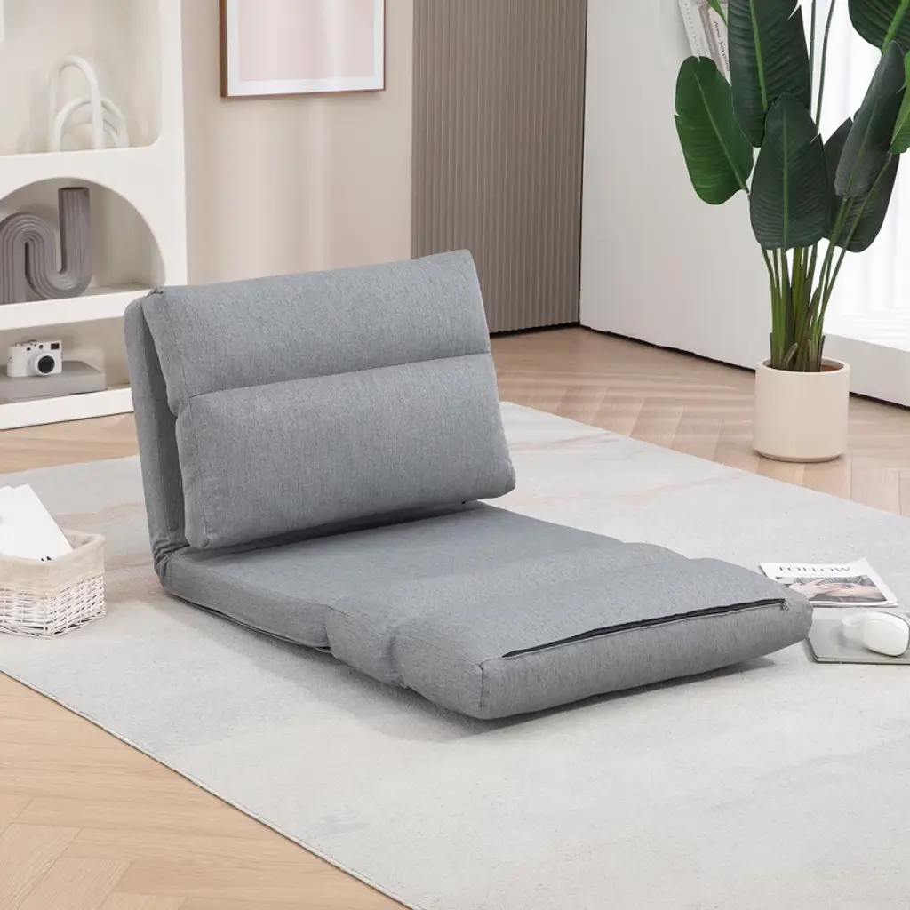 Folding Floor Chair, Convertible Lazy Sofa Bed, Floor Couch With 6-position Adjustable Backrest And Pillow For Reading, Gaming, Meditating, Gray