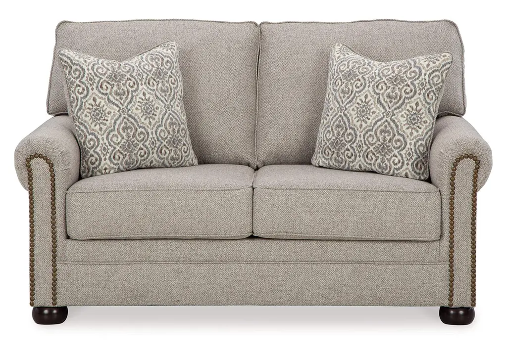 Inspired by the past but rooted firmly in the present, the Gaelon queen sofa sleeper complements your transitional seating area. Its versatile upholstery is delightfully detailed for a subtle herringbone effect. Designer touches like decorative nailhead trim and bun legs add traditional character. A handy pull-out mattress brings must-have function. With this sofa sleeper's reliable style and comfort, all you need to do is sit back and relax. Weight 250.000 lbs. (112.5kgs.)