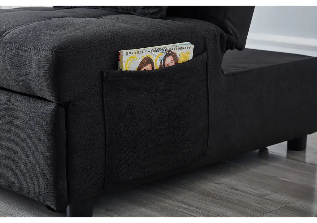 Gdf Studio Sofa Bed Convertible Sleeper Chair Bed With Side Pocket, Black