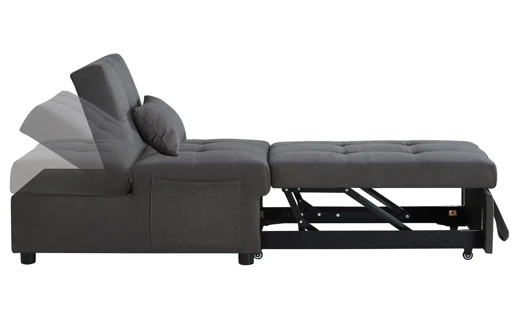 Gdf Studio Sofa Bed Convertible Sleeper Chair Bed With Side Pocket, Gray