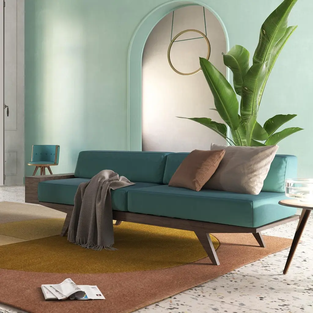 The Giò collection has been designed by the company’s internal Research Center. Giò is a collection, in which design and functionality meet. The sofa bed has a maple on cherrywood frame and armrest with two storage compartment. Cushions are upholstered with blue fabric. The furniture frames are made of solid wood. Light and symmetric in shape, they are designed to optimize modern homes making them at the same time unique. Upon request made of walnut wood.