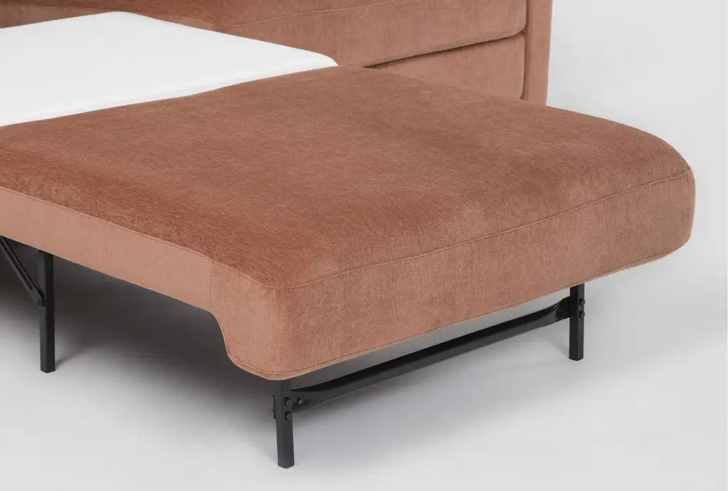 Experience the perfect blend of style and functionality with the Giorgia Orange Spice 88" King Convertible Sleeper Sofa. This modern sleeper sofa features a vibrant spice color that adds a touch of warmth to any living room. The fabric upholstery is made of 100% polyester, ensuring durability and comfort.