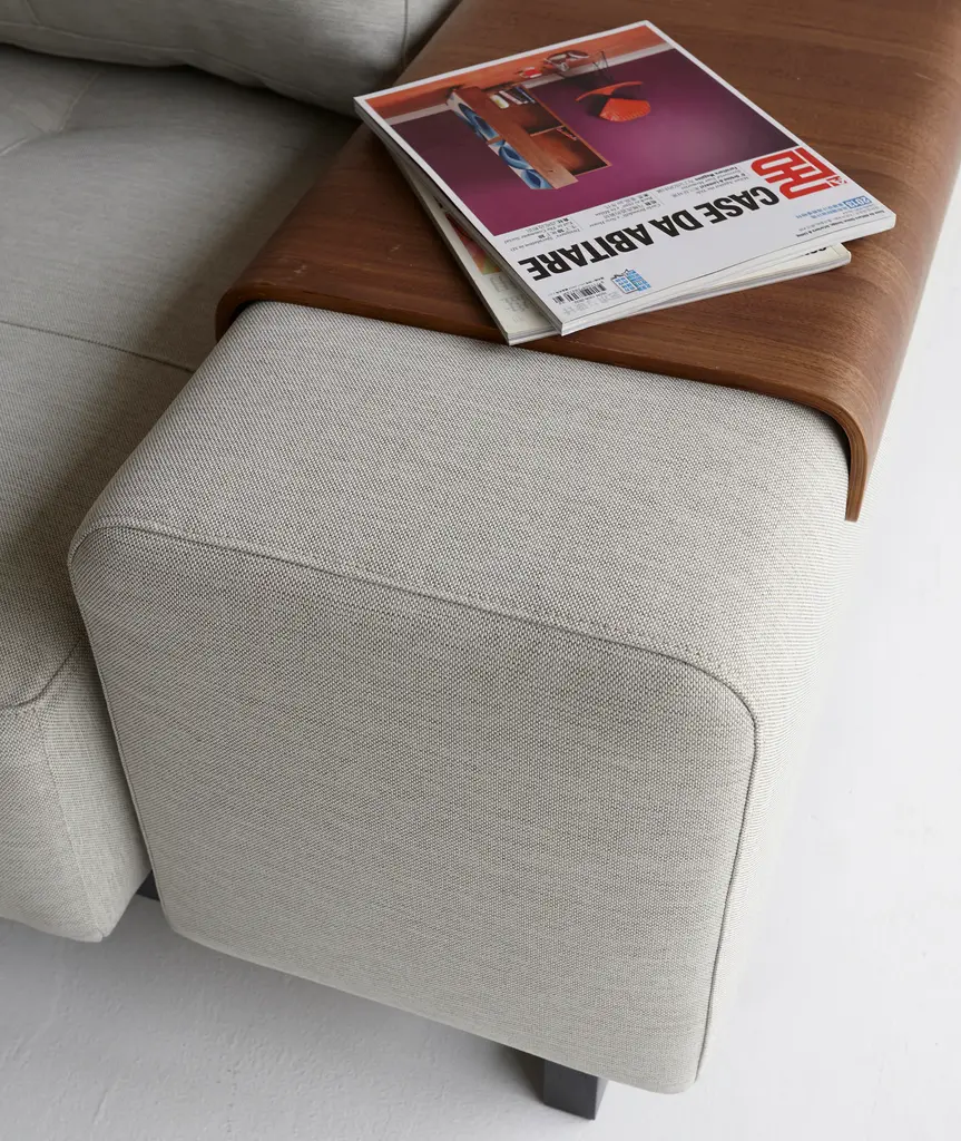 The design stands majestically as a sofa bed tour de force. An imposing display of fusion between contemporary design and multifunction. The grandness of the armrests give the sofa a clear design reference and multi functionality when combined with the integrated tray table. Easily transformed from sofa to spacious bed the Grand Deluxe Excess Lounger is a superior manifestation of Scandinavian multifunctional design. Add the Deluxe Excess Ottoman to create a sectional and extra seat. Space optimization at its best.