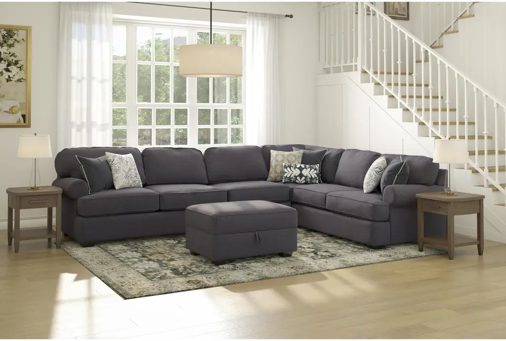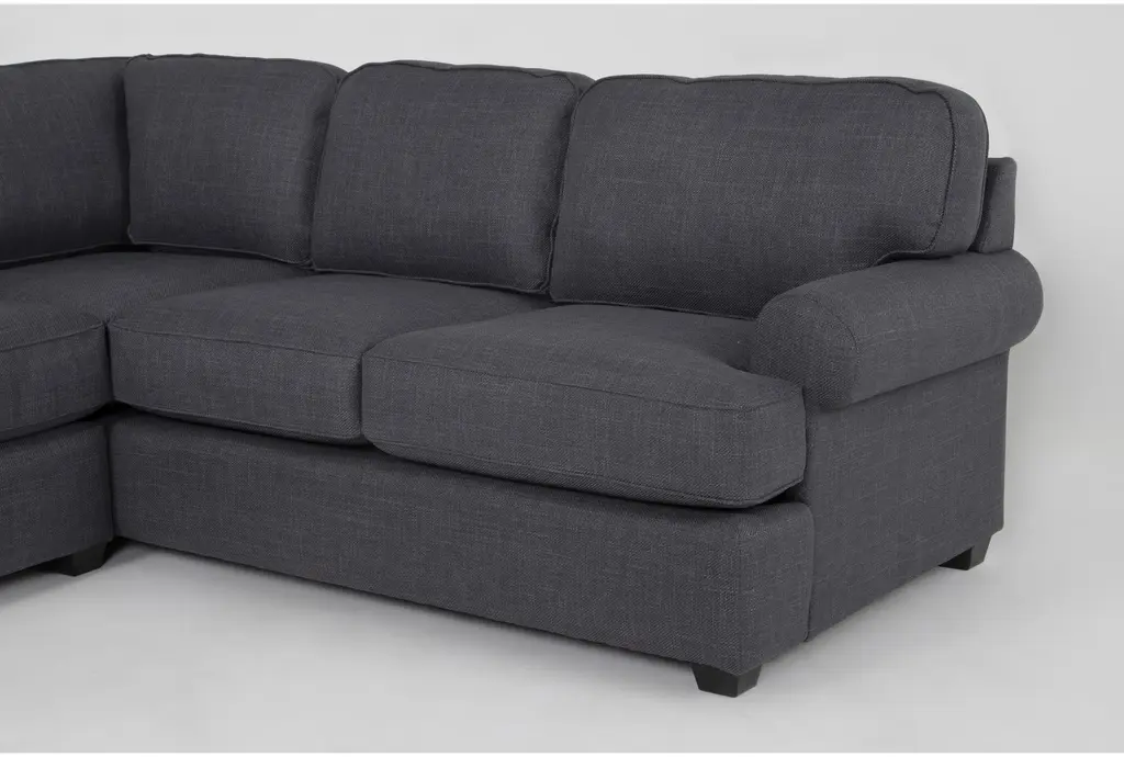 The Hampstead II Blue 140" 2 Piece Sectional with Left Arm Facing Queen Sleeper Sofa & Ottoman is perfect for any living room. This casual sectional features a comfortable blue fabric and rolled arms, making it a stylish and functional addition to your home.