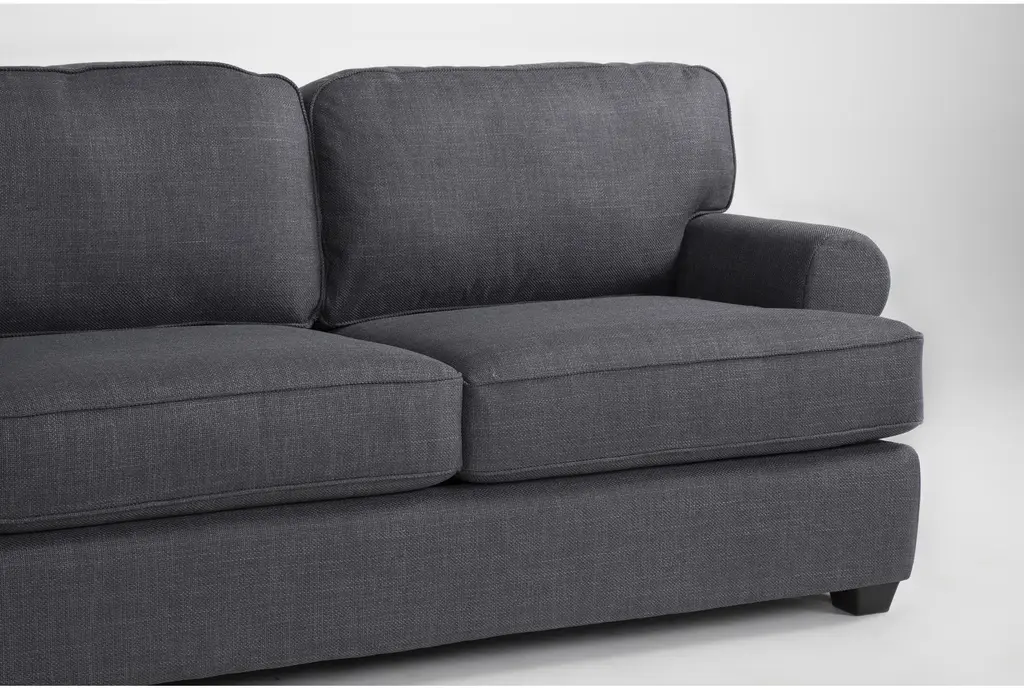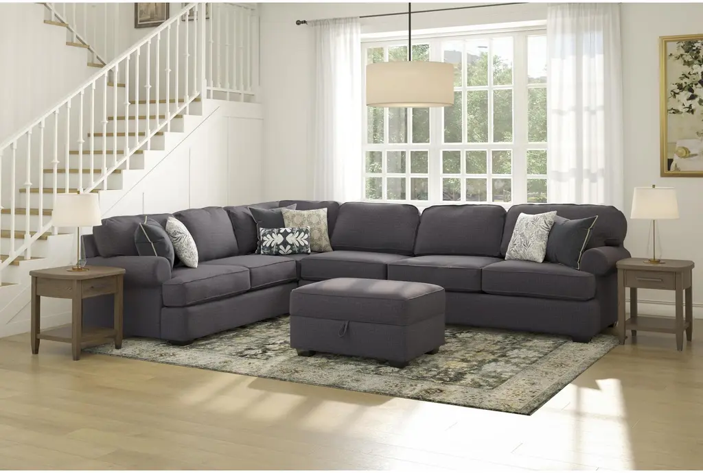 Experience the ultimate in comfort and versatility with the Hampstead II Blue 140" 2 Piece Sectional with Right Arm Facing Queen Sleeper Sofa & Ottoman. This spacious sectional is perfect for any living room, providing ample seating and a convenient sleeper option for guests. The included ottoman adds extra functionality with its storage capability, making it a practical addition to your home.