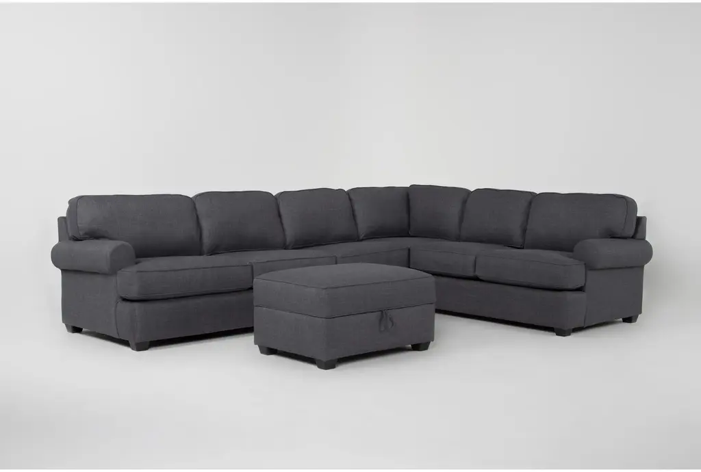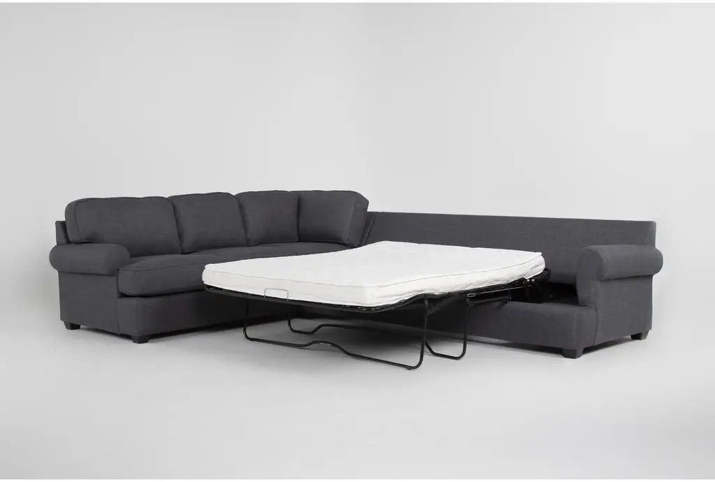 Hampstead Ii Blue 140" 2 Piece Sectional With Right Arm Facing Queen Sleeper Sofa & Ottoman