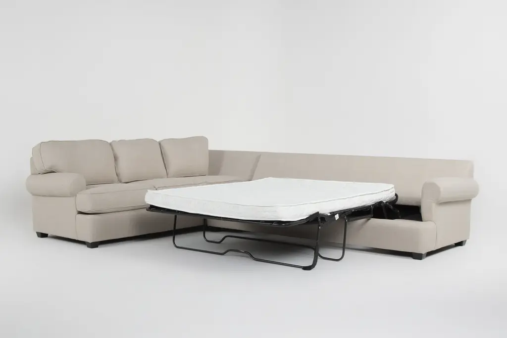 Hampstead Ii Linen 140" 2 Piece Sectional With Right Arm Facing Queen Sleeper Sofa & Ottoman | Loose Reversible Back