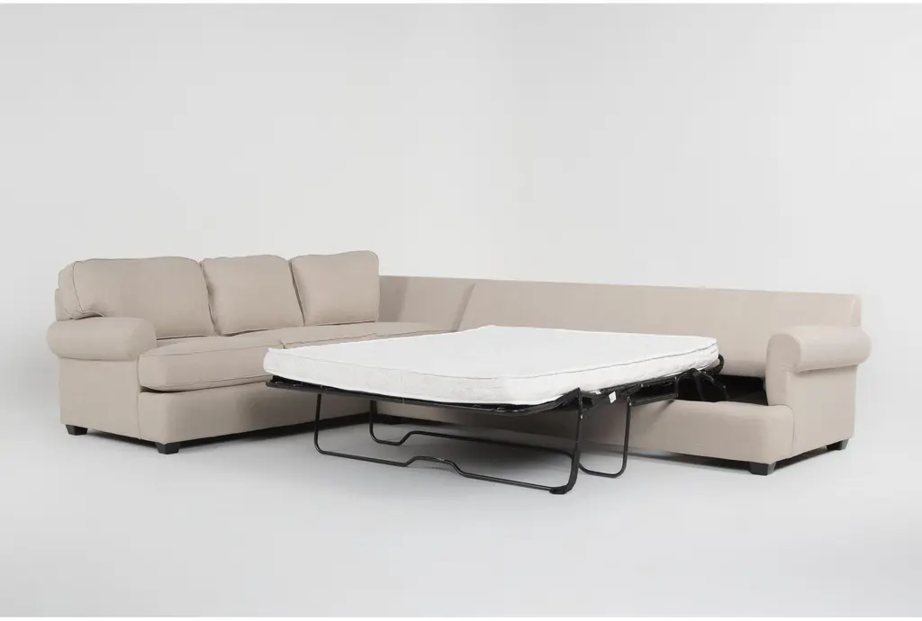 Hampstead Ii Linen 140" 2 Piece Sectional With Right Arm Facing Queen Sleeper Sofa Chaise & Ottoman | Loose Reversible Back