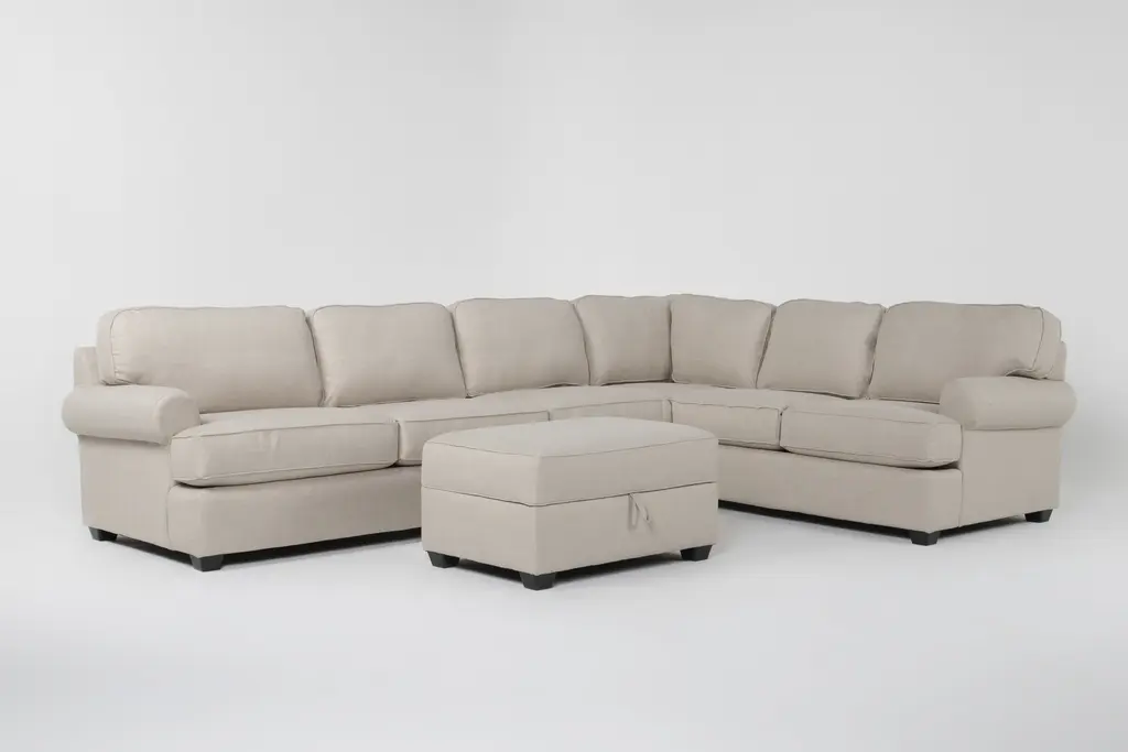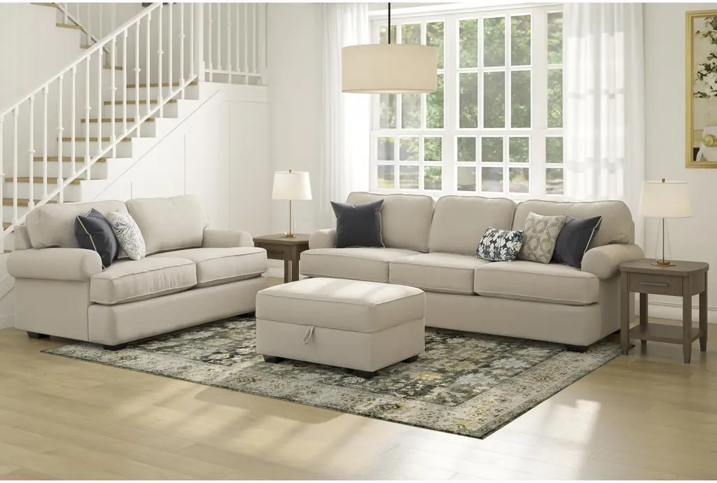 Hampstead Ii Linen Beige 3 Piece Queen Sleeper Sofa Loveseat & Ottoman Set